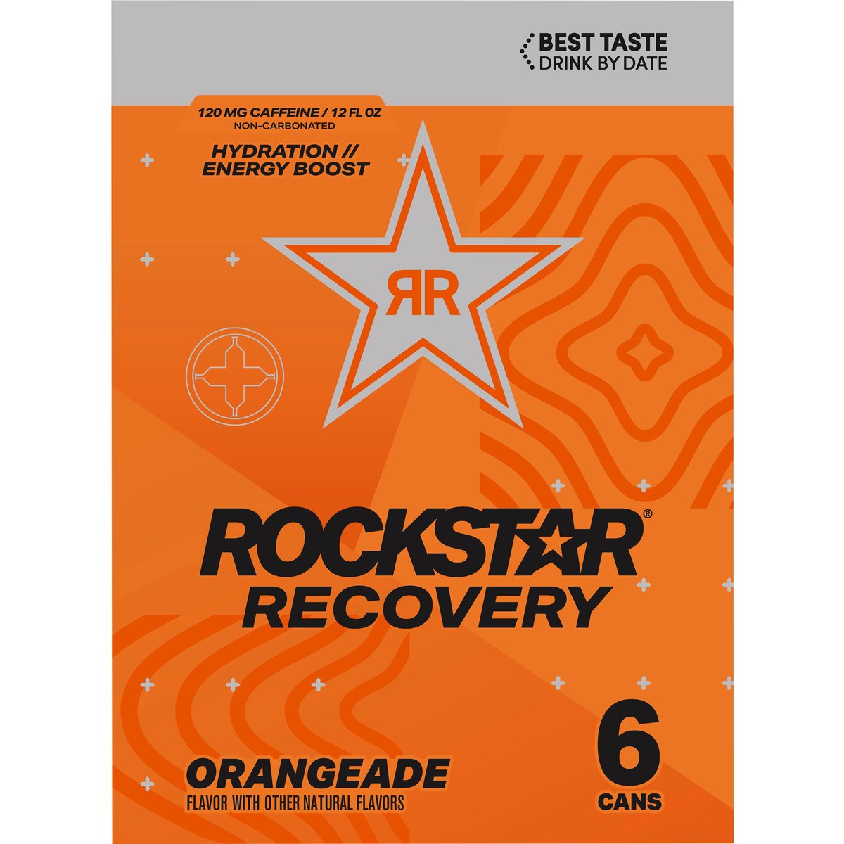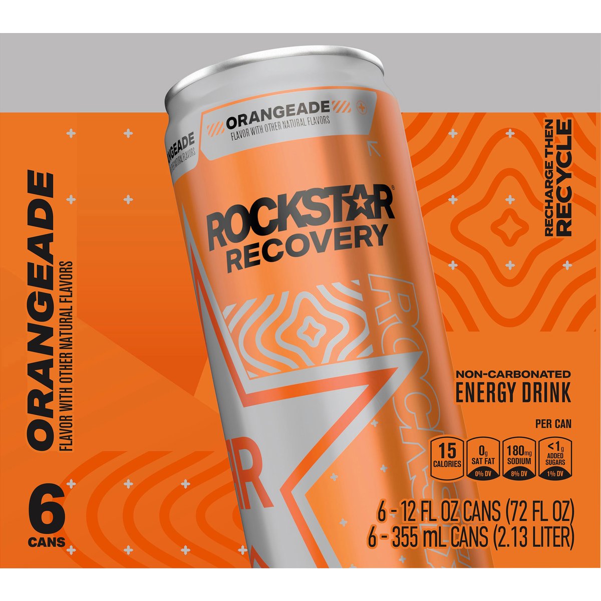 Flavor with other natural flavors Per Can: 15 Calories; 0 g sat fat (0% DV); 180 mg sodium (8% DV); less than 1 g added sugars (1% DV). 120 mg caffeine / 12 fl oz. Caffeine Content: 120 mg / 12 fl oz. Non-carbonated. Hydration. Energy boost. Non-carbonated. rockstarenergy.com. how2recycle.info. SmartLabel: Scan for more food information or call 1-800-433-2652. Instagram: Rockstarenergy. Recharge then recycle.