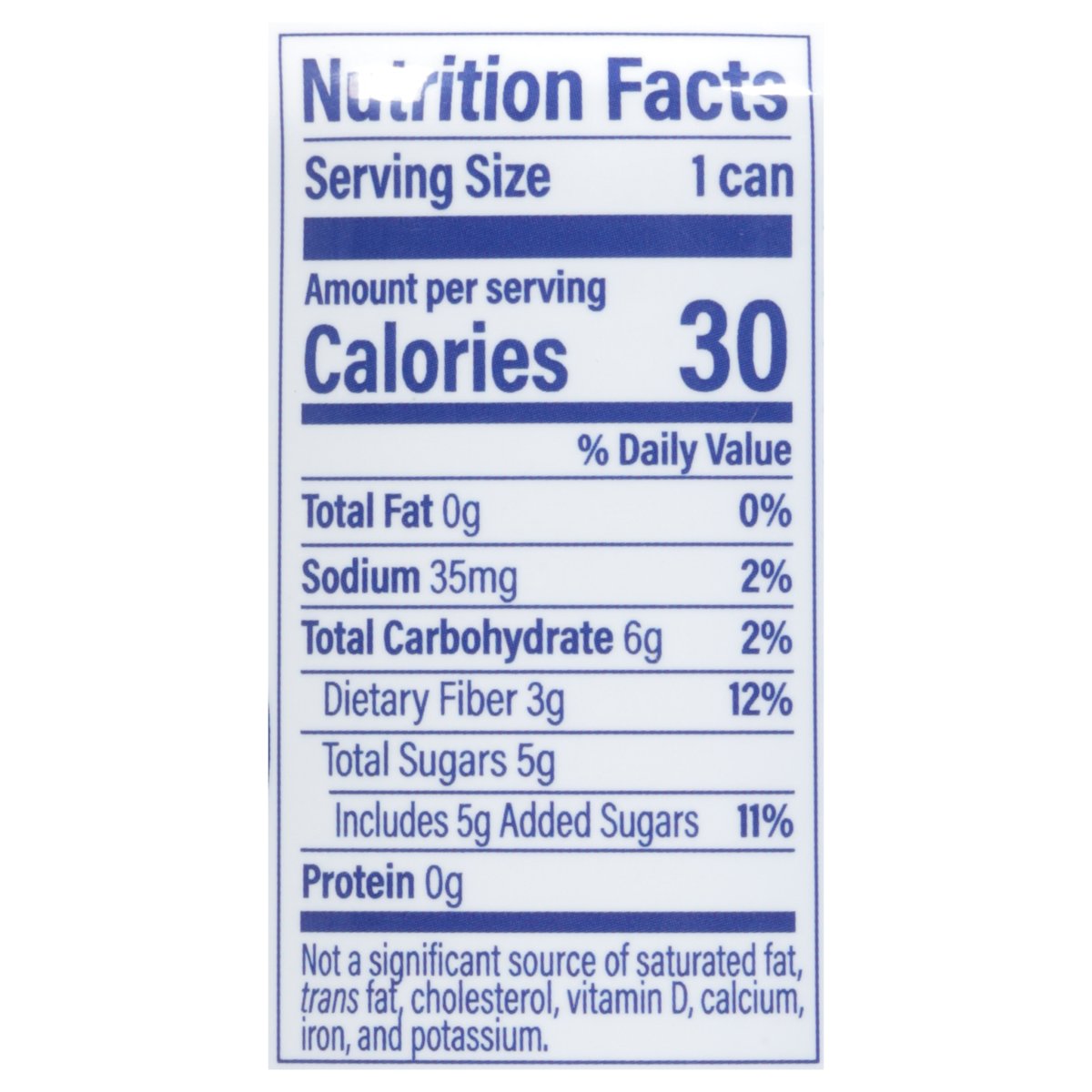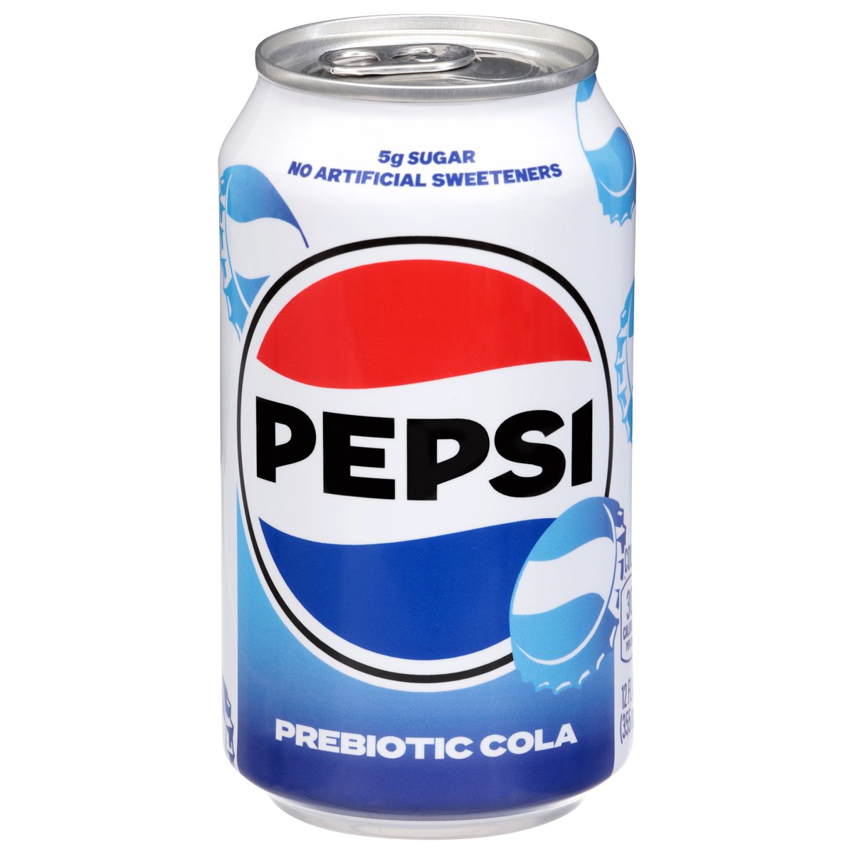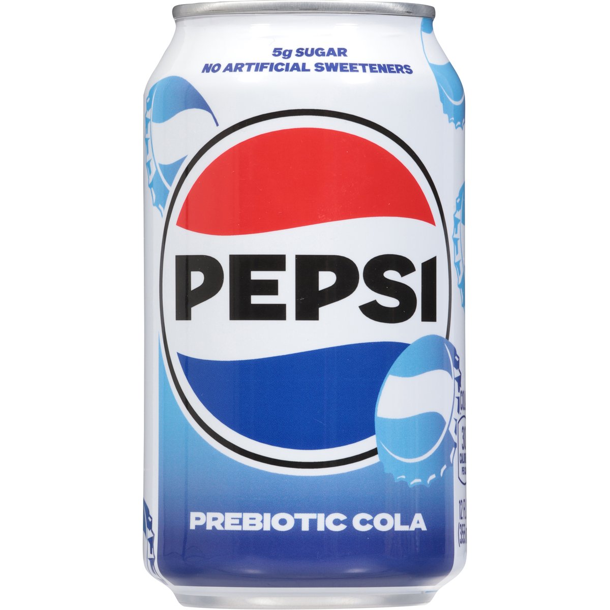 5 g sugar. 30 calories per can. 3 g prebiotic fiber(a). (a) 10g of soluble corn fiber daily has been shown to provide a prebiotic effect. This product provides 3 g soluble corn fiber. Caffeine Content: 38 mg/12 fl oz. No artificial sweeteners. Not for retail sale. Pepsi.com. how2recycle.info. We're here to help. Pepsi.com or 800.433.2652. Refresh then recycle.