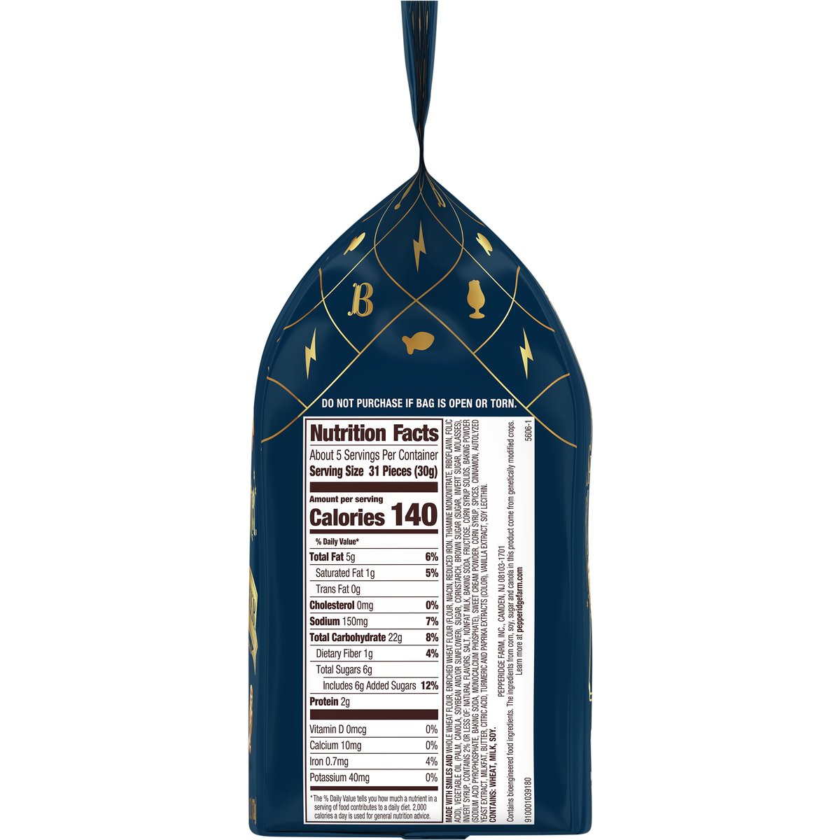 Limited Edition Baked with 8 g of whole grain per serving. Contains bioengineered food ingredients. The ingredients from corn, soy, sugar and canola in this product come from genetically modified crops. Learn more at pepperidgefarm.com. Reveal your spellbinding treat. how2recycle.info. pepperidgefarm.com. Questions or Comments? Please contact us and be sure to have the package and stamped date code info. Thank You! 1-888-737-7374.