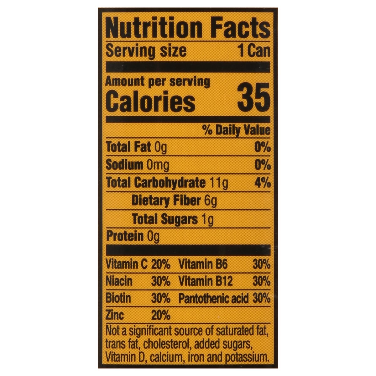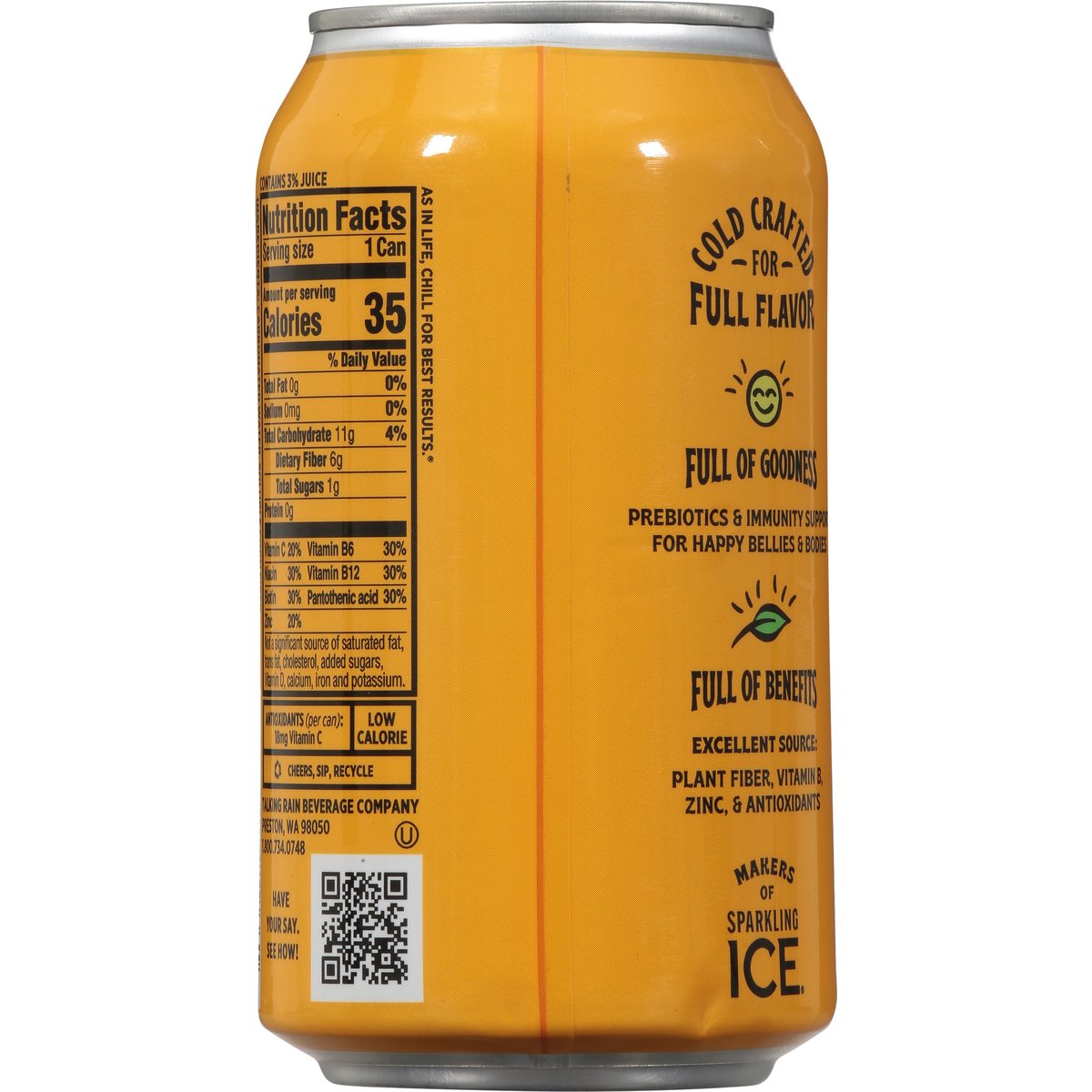 Only 1 g sugar. Antioxidants (per can): 18 mg vitamin C. Low calorie. Excellent Source: Plant fiber, Vitamin B, Zinc, & Antioxidants. Supports gut health & immunity. Cold crafted for full flavor. Full of goodness. Prebiotics & immunity support for happy bellies & bodies. Makers of sparkling ice. As in life, chill for best results. Have your say. See how! 1.800.734.0748.