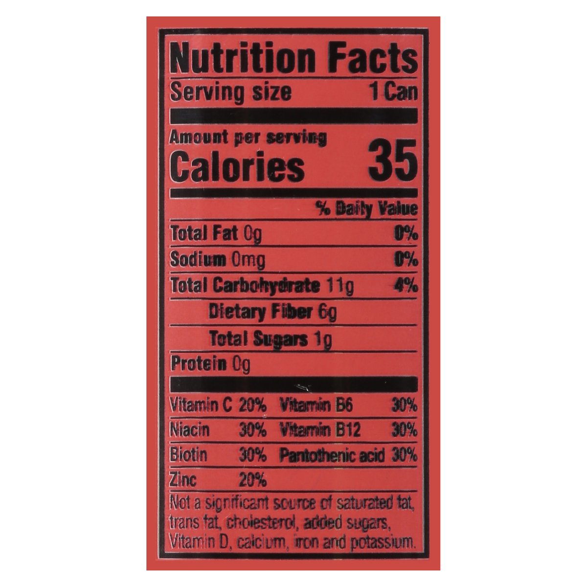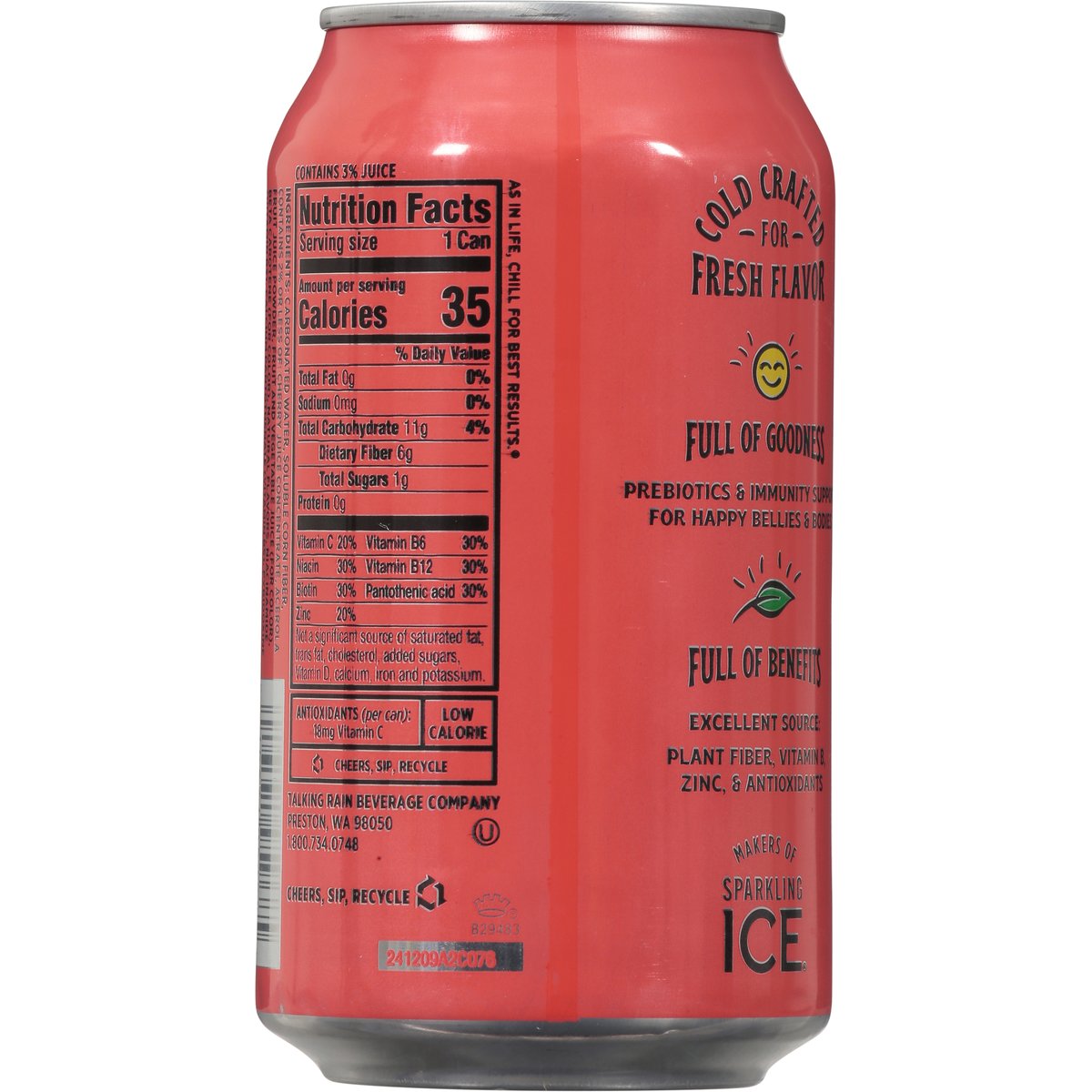 Flavored prebiotic soda. Only 1 g sugar. Antioxidants (per can): 18mg vitamin C. Low calorie. Excellent Sources: Plant fiber, vitamin B, zinc, & antioxidants. Supports gut health & immunity. Cold crafted for full flavor. Full of goodness. Prebiotics & immunity support for happy bellies & bodies. Full of benefits. Makes of sparkling ice. As in life, chill for best results. Have your say. See How! 1.800.734.0748. Cheers, sip, recycle.