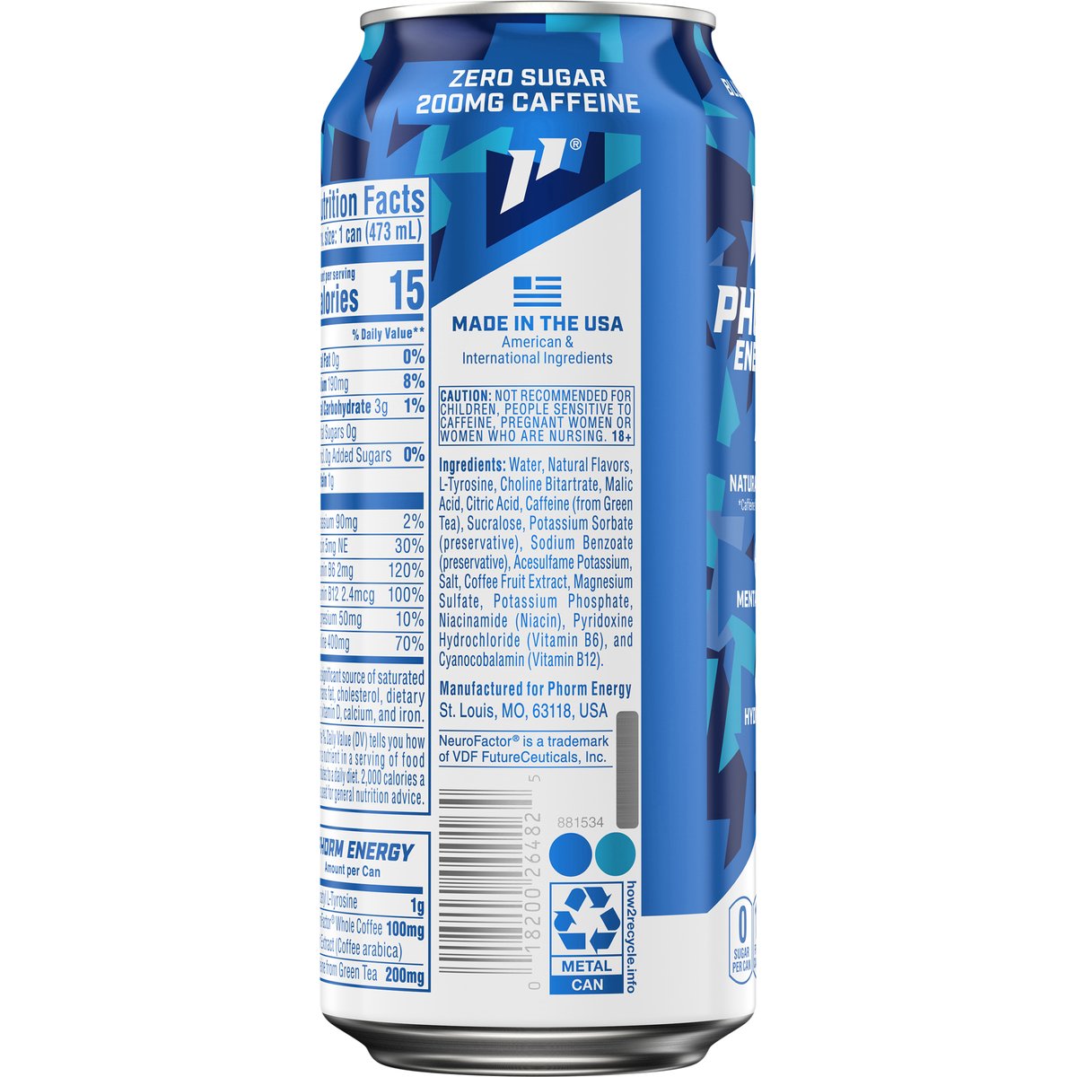 Flavored with other natural flavors. 0 sugar per can; 15 fifteen calories; 0 fat per can. Zero sugar. 200 mg caffeine. Natural energy*. Mental focus. Hydration. * Caffeine from green tea. how2recycle.info. Made in the USA. American & international ingredients.