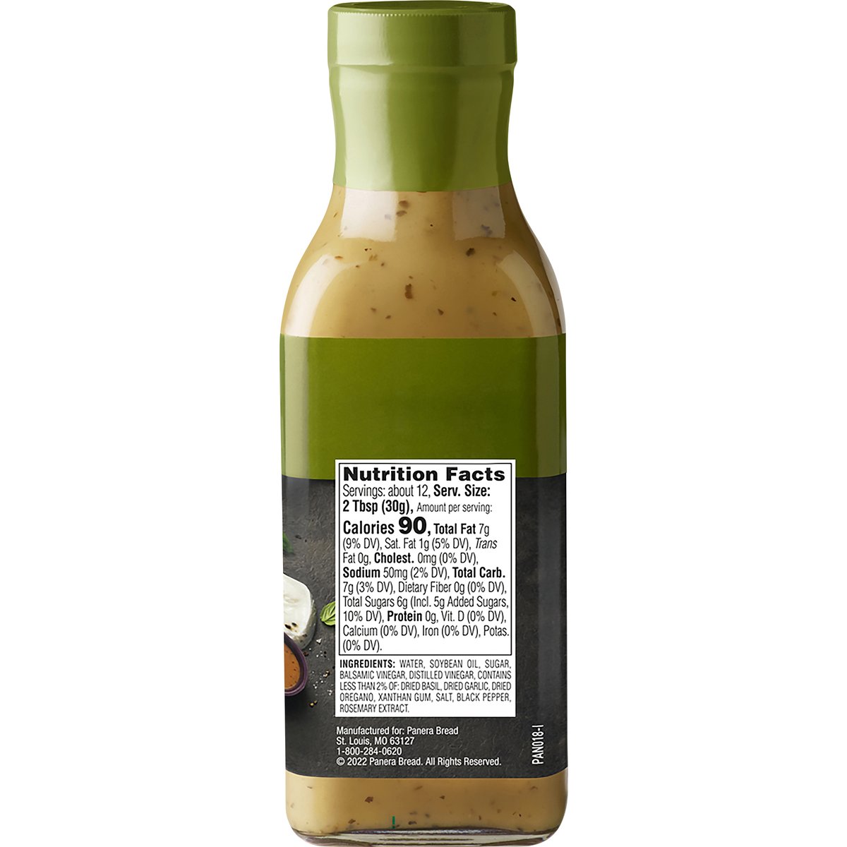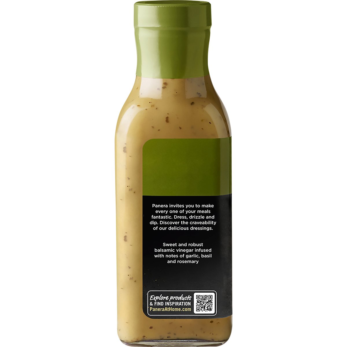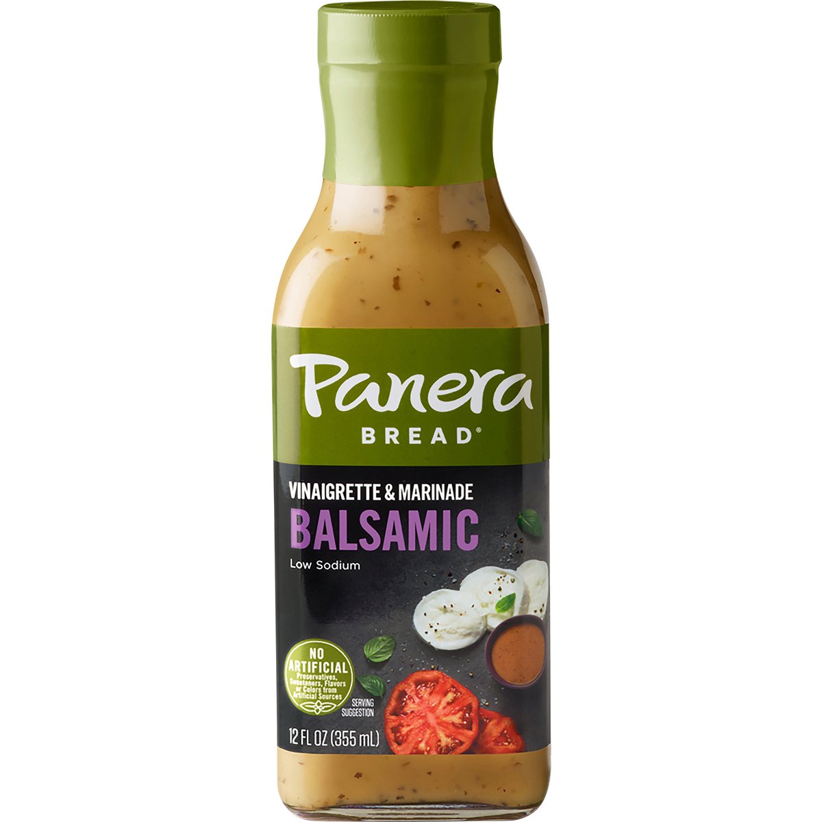 No artificial preservatives, sweeteners, flavors or colors from artificial sources. Low sodium. Panera invites you to make every one of your meals fantastic. Dress, drizzle and dip. Discover the craveability of our delicious dressings. Sweet and robust balsamic vinegar infused with notes of garlic, basil and rosemary. how2recycle.info. PaneraAtHome.com. Explore products & find inspiration. PaneraAtHome.com.