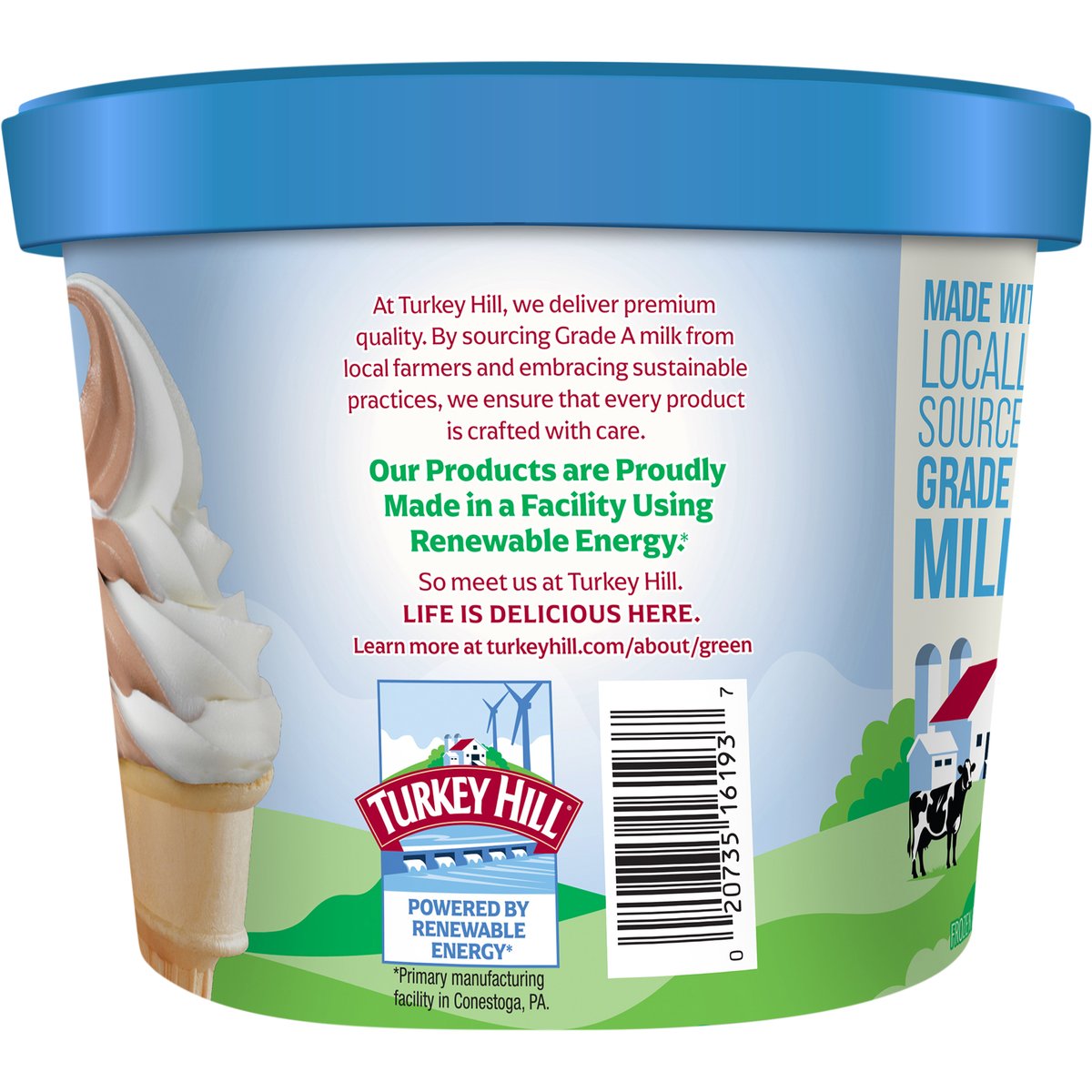 Chocolate and artificially flavored vanilla. Gluten free. Premium quality. Grade A. www.turkeyhill.com. Scan or call 1-(877) 992-9737 for more food information. Thank you for your purchase. We welcome your questions or comments at 800-My Dairy (M-F, 8-5 ET) or visit www.turkeyhill.com. At Turkey Hill, we deliver premium quality. By sourcing Grade A milk from local farmers and embracing sustainable practices, we ensure that every product is crafted with care. Our Products are Proudly Made in a facility using renewable energy*. So meet us at Turkey Hill. Life is delicious here. Learn more at turkeyhill.com/about/green. Powered by renewable energy*. * Primary manufacturing faciltiy in Conestoga, PA.