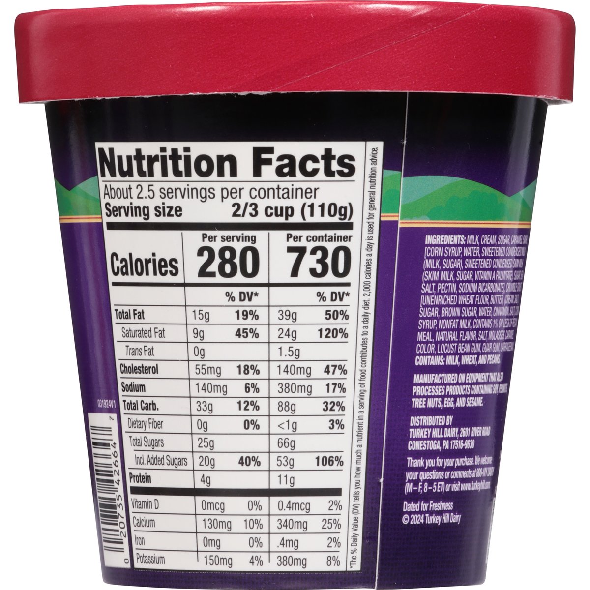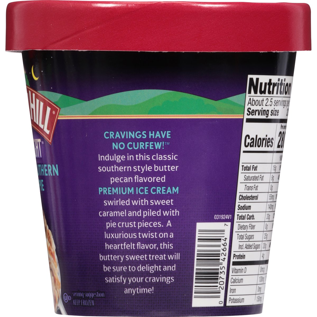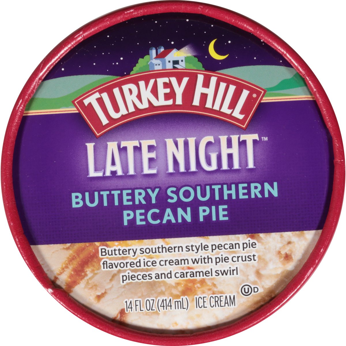 Buttery southern style pecan pie flavored ice cream with pie crust pieces and caramel swirl. Since 1931. Cravings have no curfew! Indulge in this classic Southern style butter pecan flavored premium ice cream swirled with sweet caramel and piled with pie crust pieces. A luxurious twist on a heartfelt flavor, this buttery sweet treat will be sure to delight and satisfy your cravings anytime! www.turkeyhill.com. Scan or call 1-(877) 992-9737 for more food information. Thank you for your purchase. We welcome your questions or comments at 800-My Dairy (M-F, 8-5 ET) or visit www.turkeyhill.com.