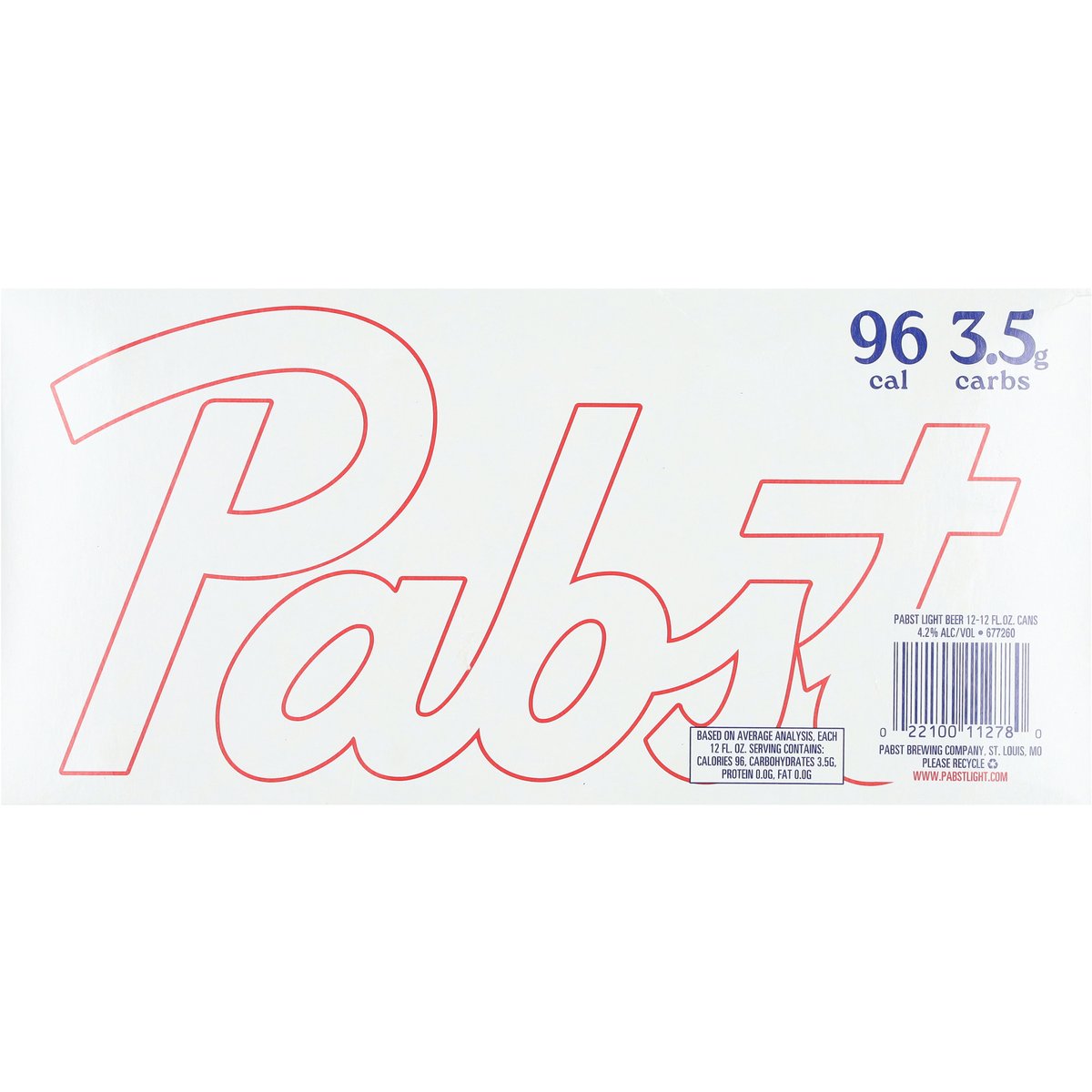 96 cal. 3.5 g carbs. America's quality light beer. Since 1844. www.pabstlight.com. Please recycle. 4.2% alc/vol. 8.4