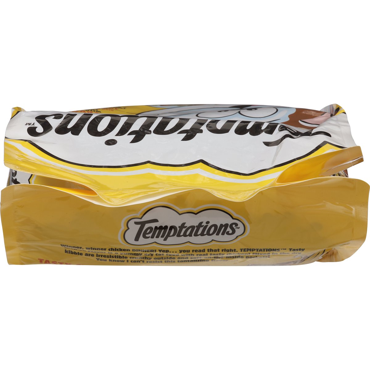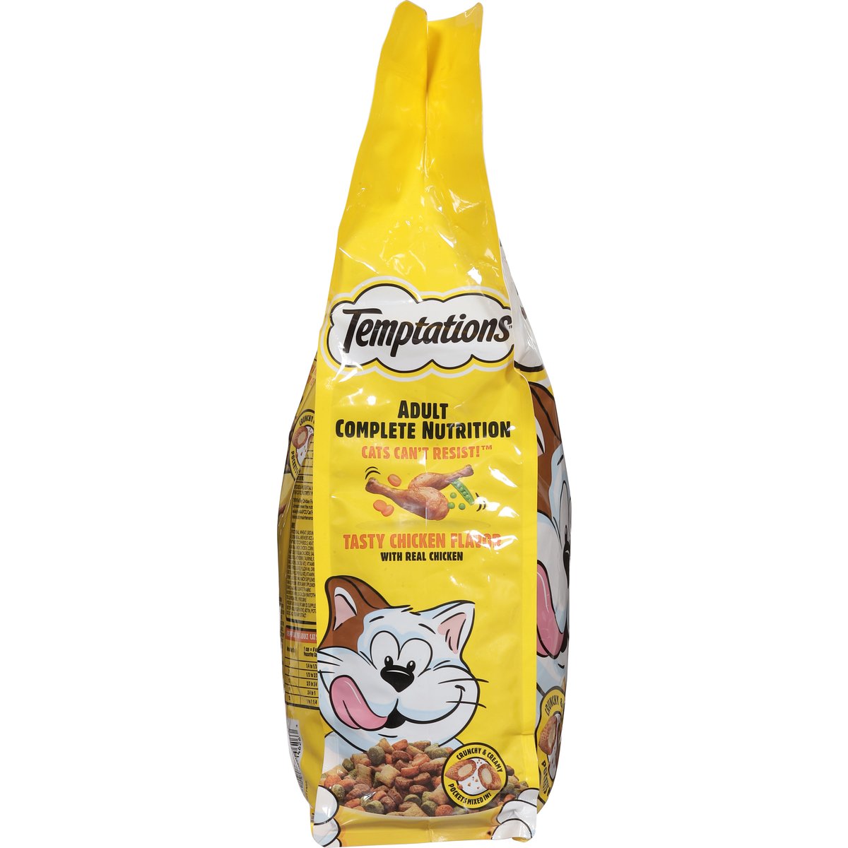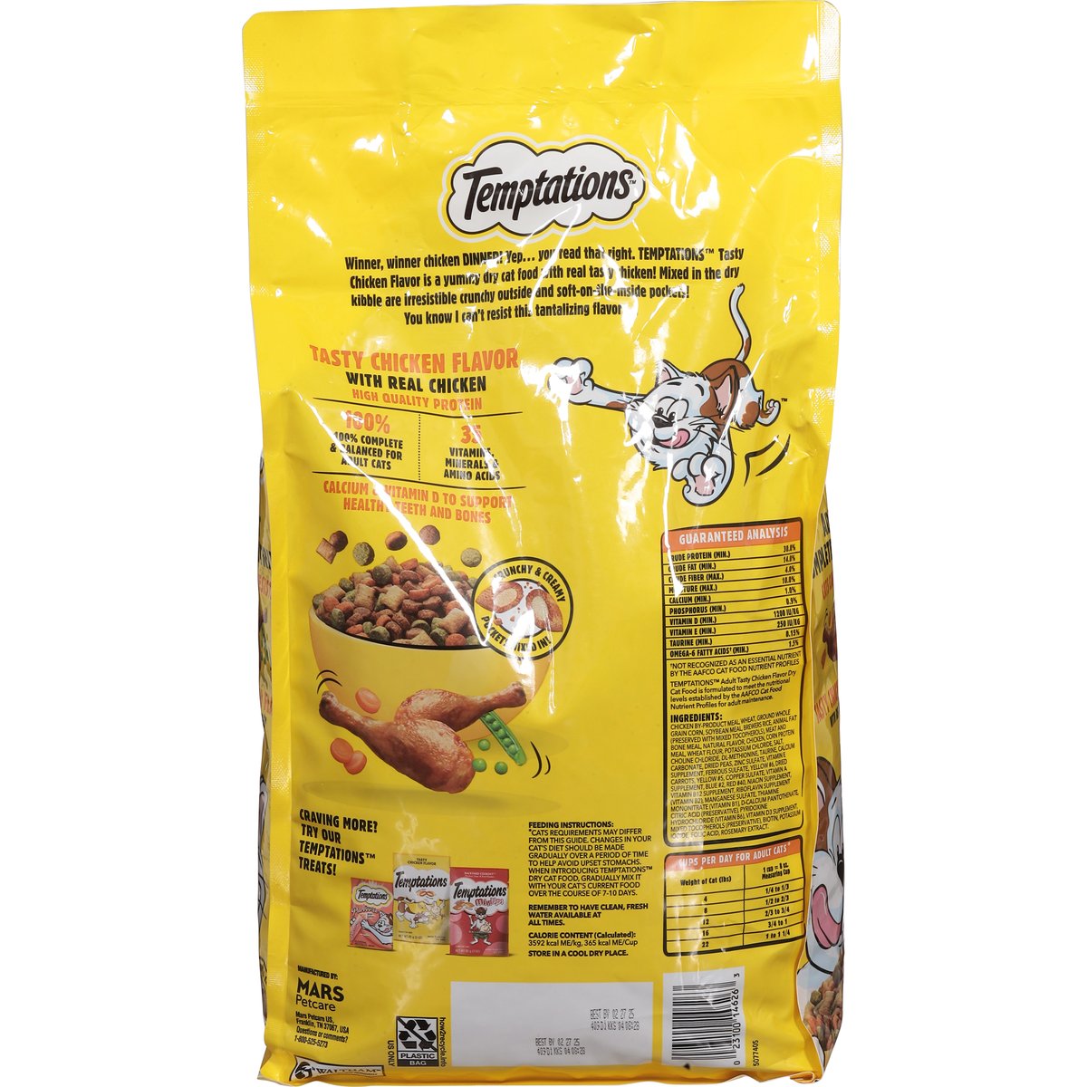 Tasty chicken flavor with real chicken. 35 vitamins, minerals & amino acids. Calcium & vitamin D support healthy teeth and bones. Adult complete nutrition. Cats can't resists! 100% complete & balanced for adults cats. Crunchy and creamy. Pockets mixed in! Winner, winner chicken dinner! Yep...you read that right. Temptations Tasty Chicken Flavor is a yummy dry cat food with real tasty chicken! Mixed in the dry kibble are irresistible crunchy outside and soft-on-the-inside pockets! You know I can't resist this tantalizing flavor. how2recycle.info. Questions or comments? 1-800-525-5273. Craving more? Try our Temptations Treats: Temptation Purrrr-ee. Temptation Tasty Chicken Flavor. Temptation Mixups.