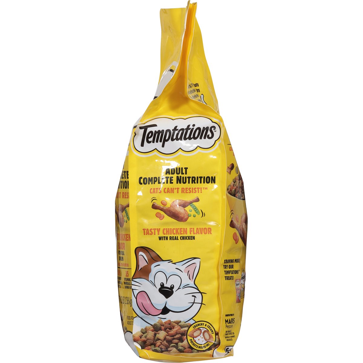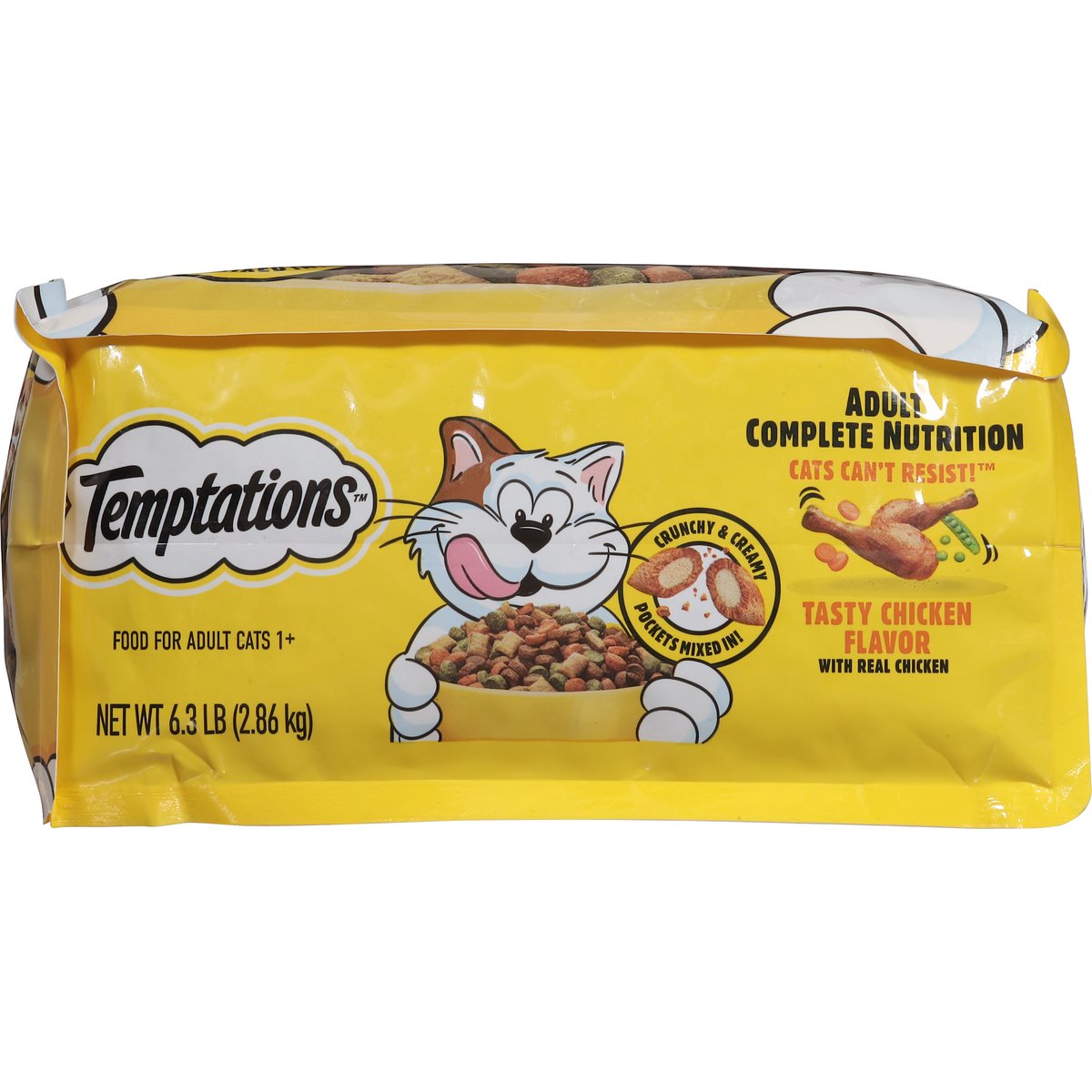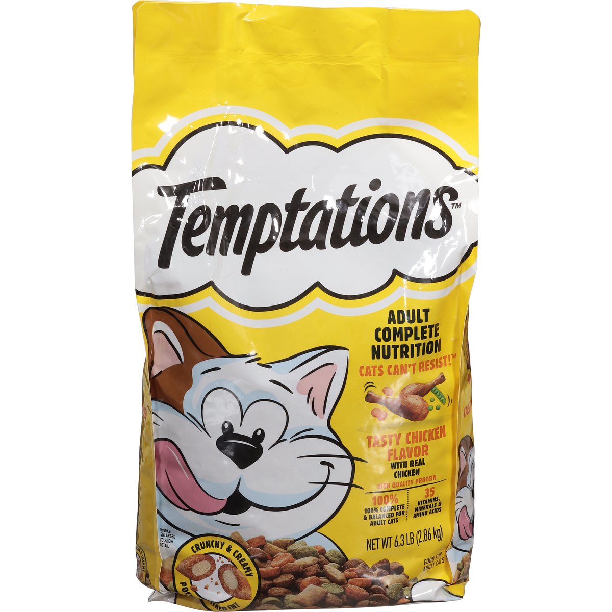 Tasty chicken flavor with real chicken. 35 vitamins, minerals & amino acids. Calcium & vitamin D support healthy teeth and bones. Adult complete nutrition. Cats can't resists! 100% complete & balanced for adults cats. Crunchy and creamy. Pockets mixed in! Winner, winner chicken dinner! Yep...you read that right. Temptations Tasty Chicken Flavor is a yummy dry cat food with real tasty chicken! Mixed in the dry kibble are irresistible crunchy outside and soft-on-the-inside pockets! You know I can't resist this tantalizing flavor. how2recycle.info. Questions or comments? 1-800-525-5273. Craving more? Try our Temptations Treats: Temptation Purrrr-ee. Temptation Tasty Chicken Flavor. Temptation Mixups.