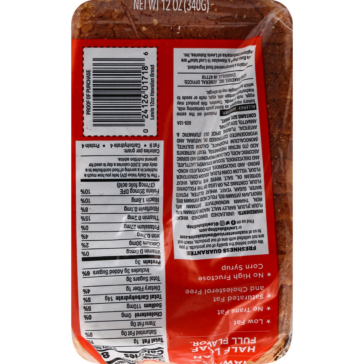 Lewis 1/2 Loaf Hawaiian Bread