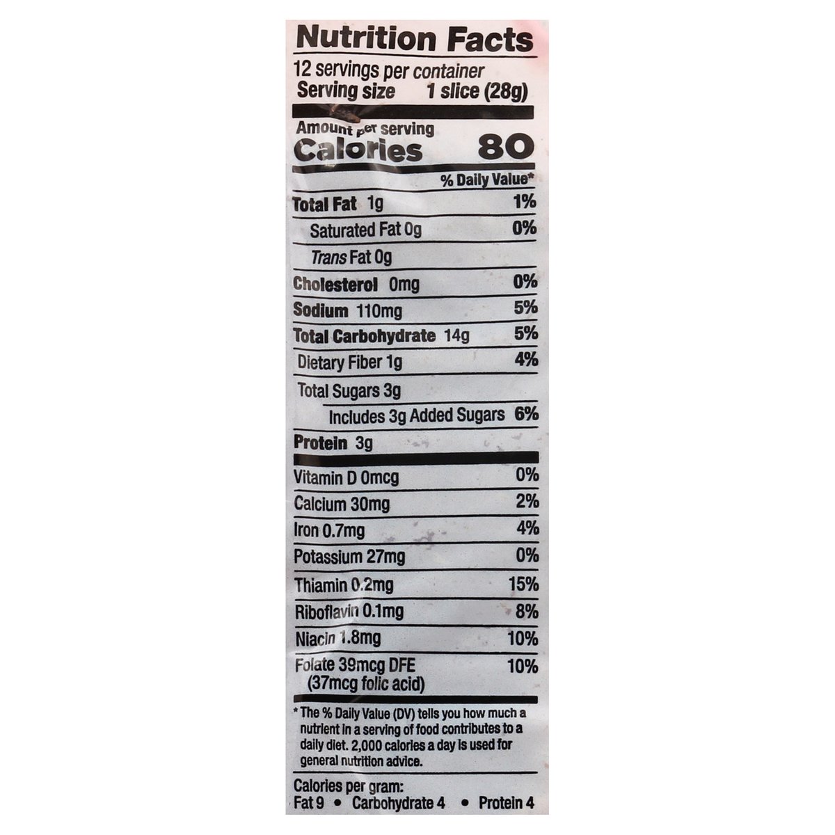 Per 1 Slice Serving: 80 calories; 0 g sat fat (0% DV); 110 mg sodium (5% DV); 3 g sugars. Low fat. No trans fat. No saturated fat. Cholesterol free. Contains a bioengineered food ingredient. Special recipe bread. Family bakers since 1925. No high fructose corn syrup. Half loaf. Full flavor. Freshness guarantee. We stand behind the quality of our products. If you are not satisfied with one of our products, reach out to us at customerservice(at)lewisbakeries.com or LewisBakeShop.com. BCTGM: Bakery Confectionery Tobacco Workers & Grain Millers union made. AFL CIO CLC. LewisBakeShop.com. Find us on Facebook. Twitter. Instagram (at)LewisBakeShop.