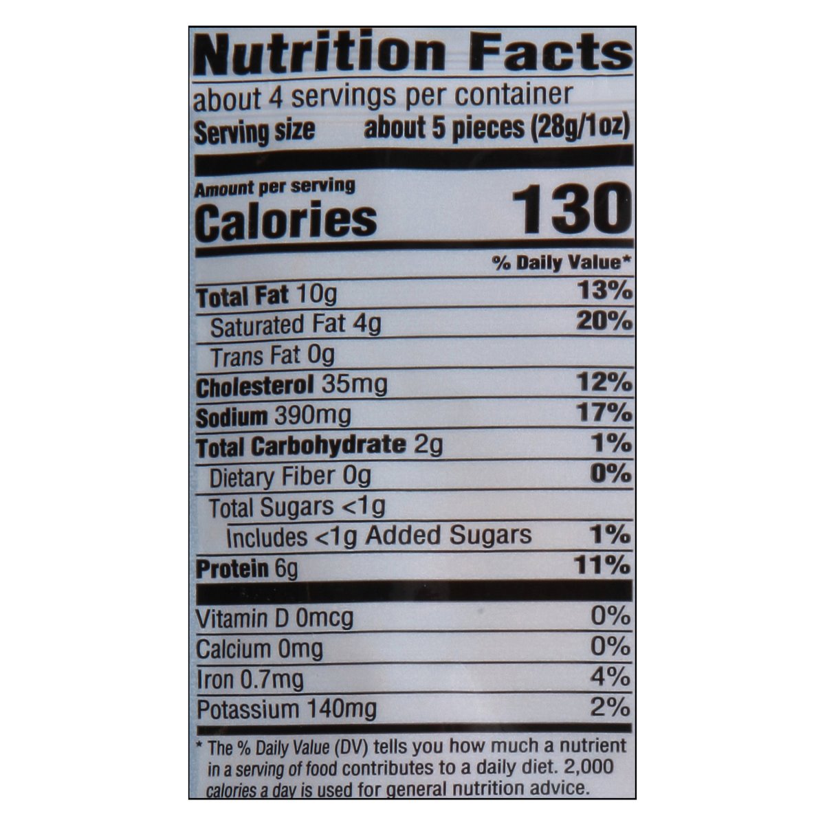 No artificial flavors or colors. Per 1 oz Serving: 130 calories; 4g sat. fat (20% DV); 390mg sodium (17% DV); <1g added sugars (1% DV). New! Big flavor, by the Bites. U.S. inspected and passed by Department of Agriculture. www.slimjim.com. how2recycle.info. SmartLabel: Scan here for more food information or call 1-800-242-6200. Meat us online. Question or comments, visit us at www.slimjim.com or call 1-800-242-6200. Resealable.