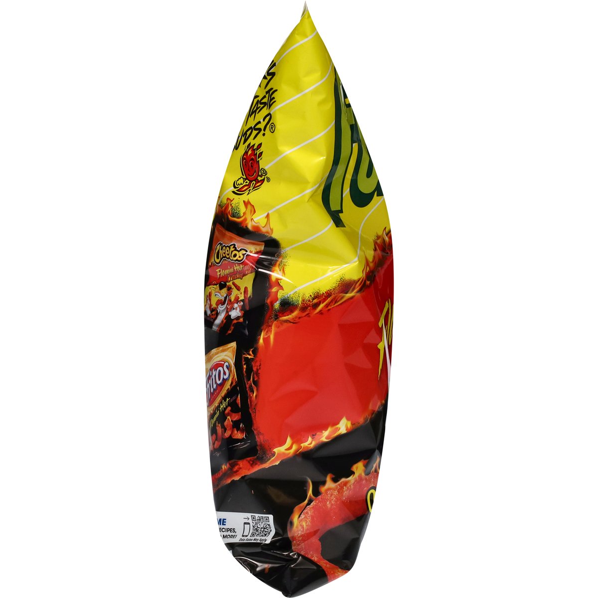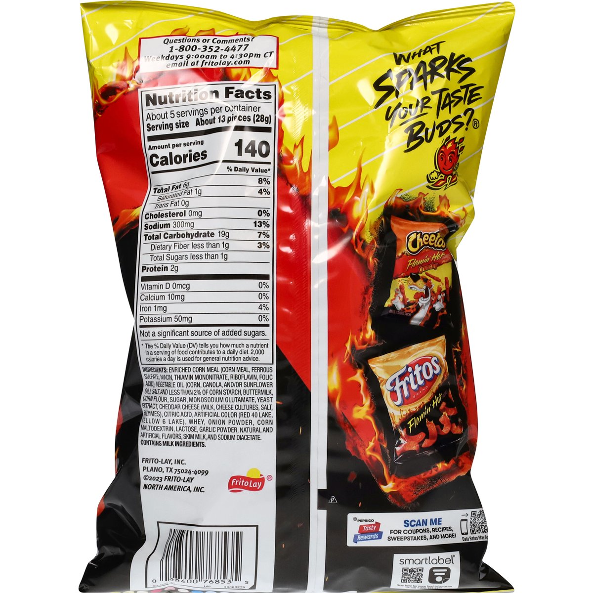 fritolay.com. SmartLabel: Scan for more food information or call 1-800-352-4477. Questions or comments? 1-800-352-4477 weekdays 9:00am to 4:30pm CT email at fritolay.com. Pepsico Tasty Rewards: Scan for coupons, recipes, sweepstakes, and more! Data rates may apply. What sparks your taste buds? Cheetos: Flamin' hot crunchy. Fritos: Flamin hot.