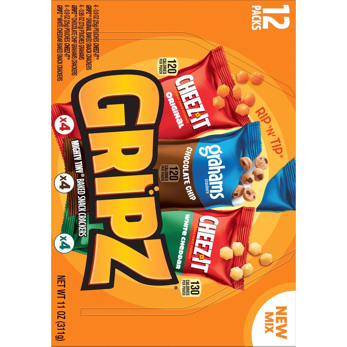 Cheez-It Gripz 12 Packs Original/Chocolate Chip/White Cheddar Mighty Tiny Baked Snack Crackers