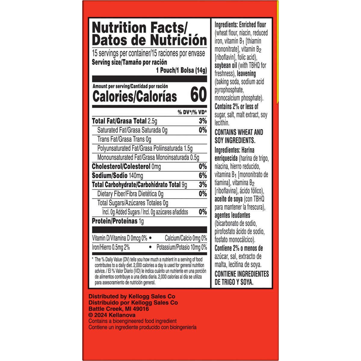 Contains a bioengineered food ingredient. New! 15 single-serve packs. Perfectly sized packs for at home or on the go. kellanovaus.com. how2recycle.info. Questions or comments? Visit kellanovaus.com. Call 1-877-453-5837. Certified 100% recycled paperboard.