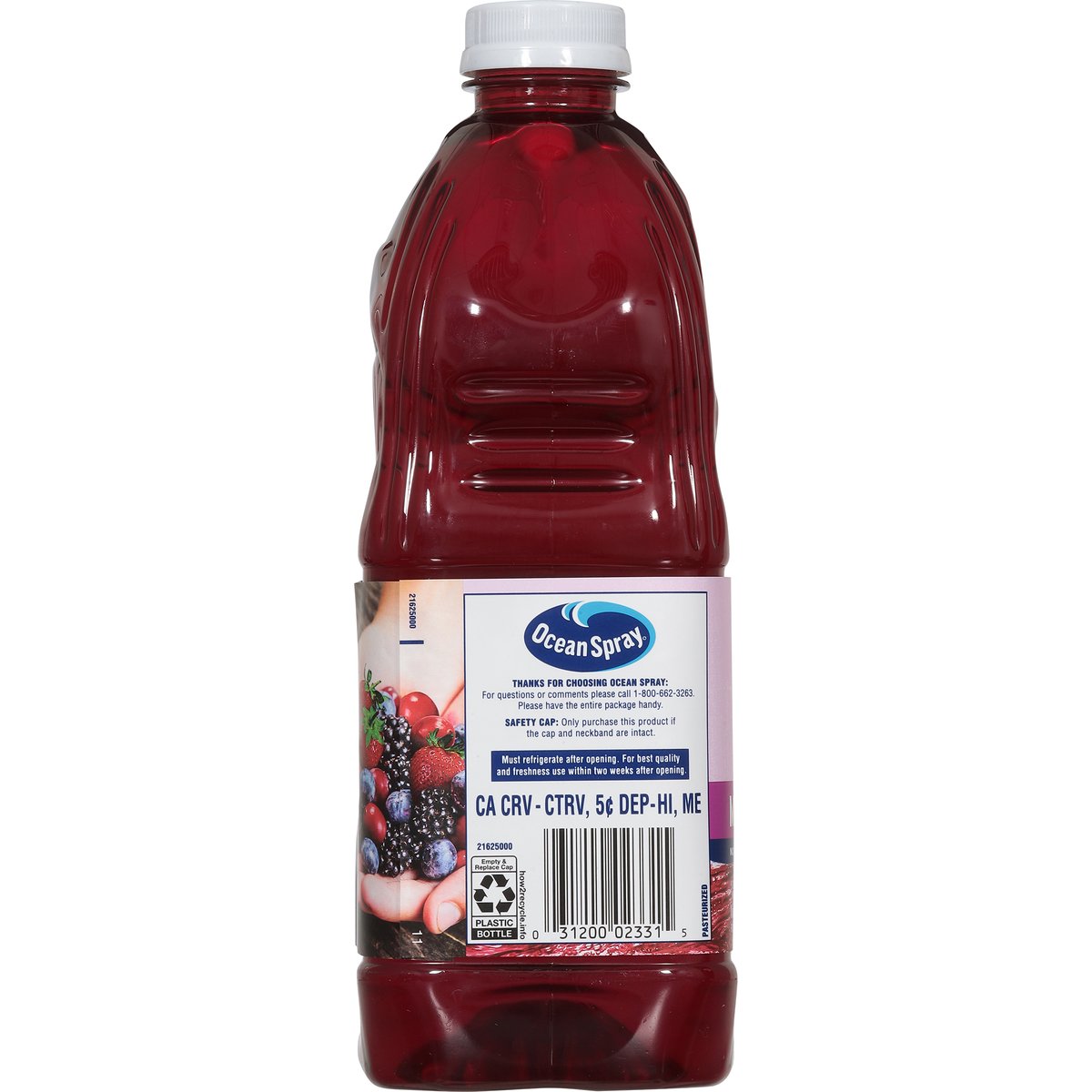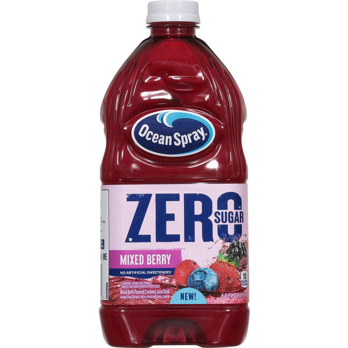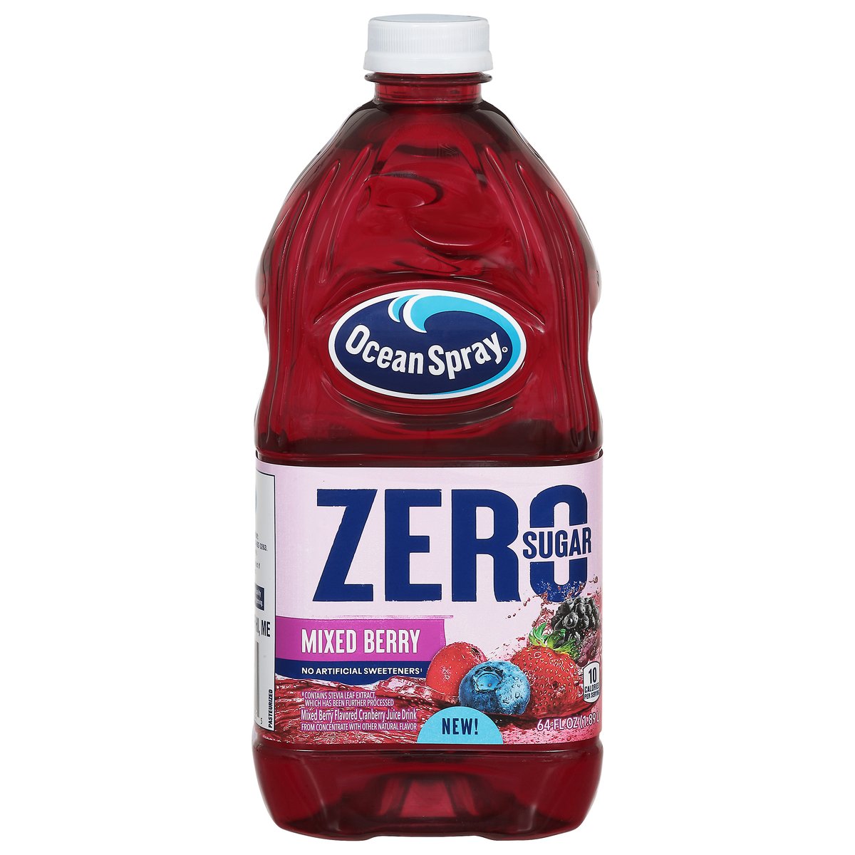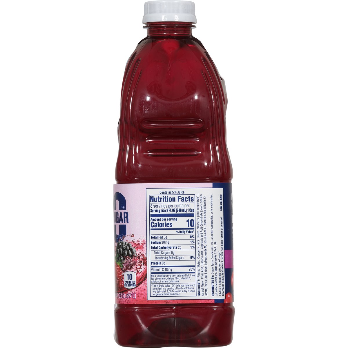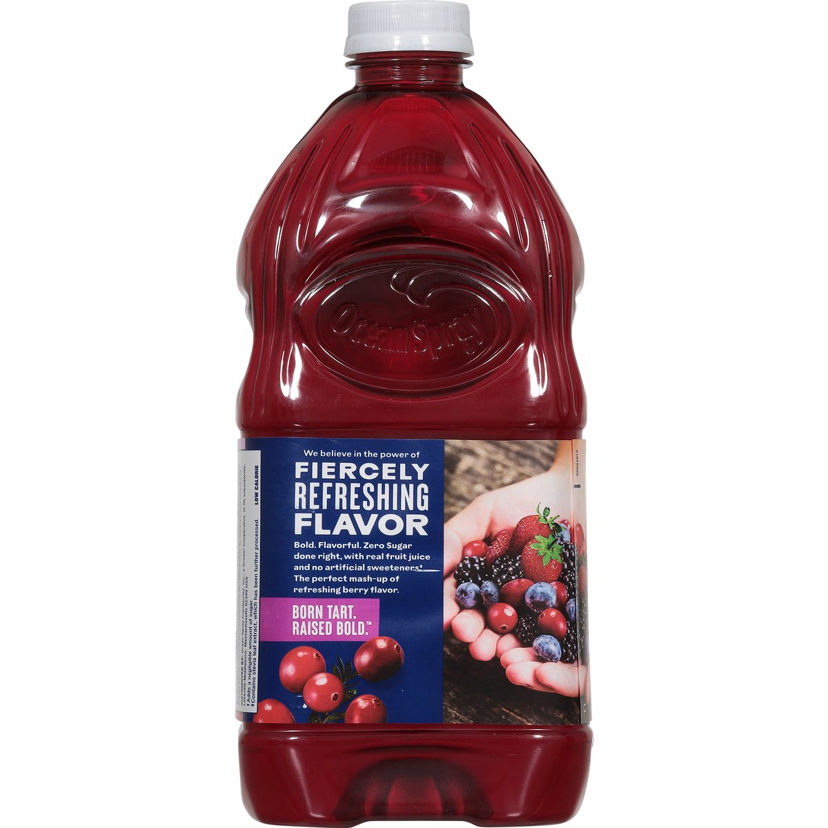 Mixed berry flavored cranberry juice drink from concentrate with other natural flavor. 10 calories per serving. Zero sugar. Low calorie. No artificial sweeteners (Contains stevia leaf extract, which has been further processed). New! We believe in the power of fiercely refreshing flavor bold. Flavorful. Zero sugar done right, with real fruit juice and no artificial sweeteners (contains stevia leaf extract which has been further processed). The perfect mash-up of refreshing berry flavor. Born tart. Raised bold. how2recycle.info. Thanks for Choosing Ocean Spray: For questions or comments please call 1-800-662-3263. Please have the entire package handy.