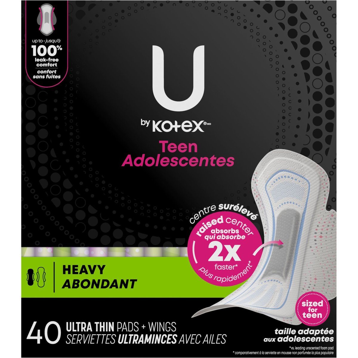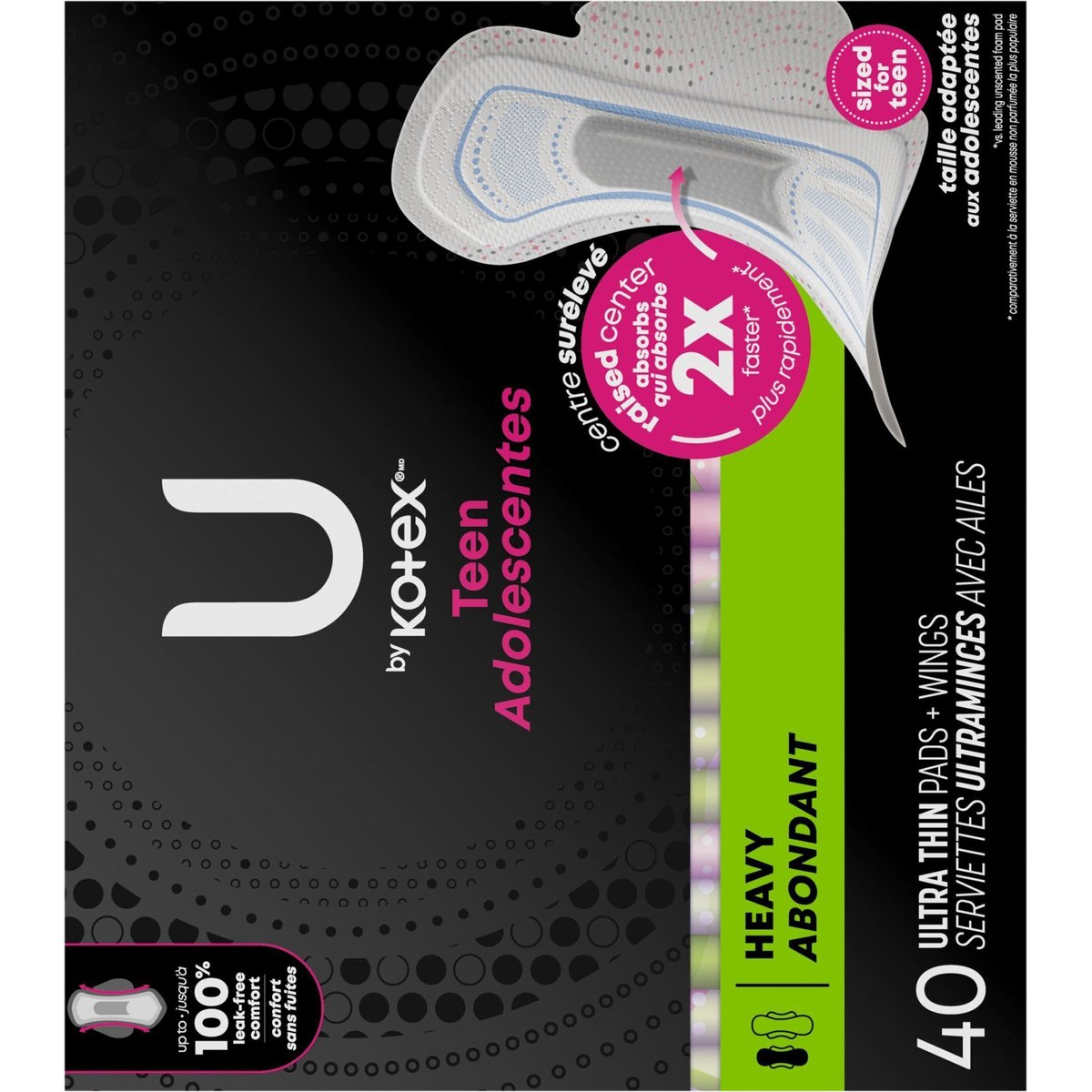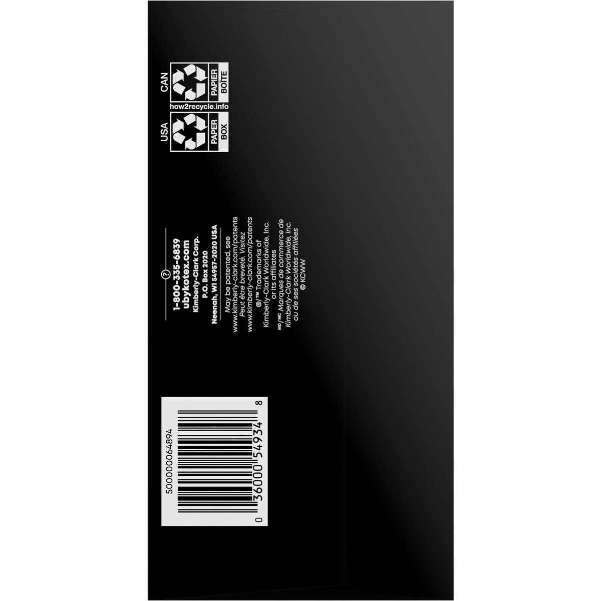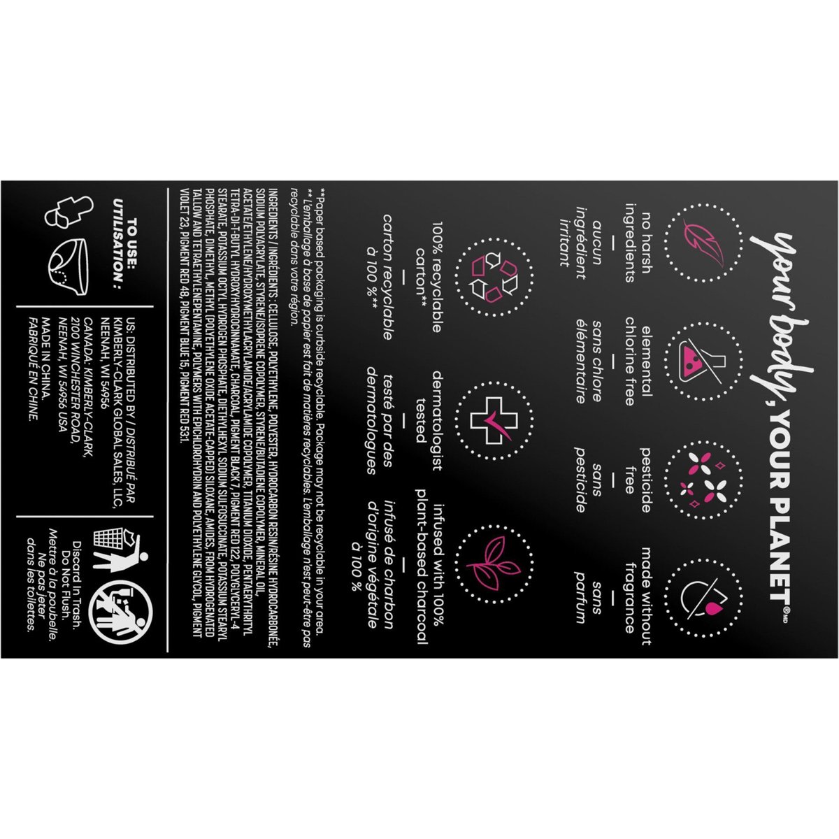 Previously. Trusted protection. Size for teen. Cushioncore with charcoal helps stop odor. Uniquely shaped to fit and flex for outstanding skin comfort. Cushioncare absorbs instantly for up to 100% leak free. Helps stop odor indused with 100% plant-based charcoal. Uniquely with teens in mind. Overnight. No harsh ingredients. Elemental chlorine free. Pesticide free. Made without fragrance. Dermatologist tested. ubykotex.com. how2recycle.info. 1-800-335-6839 Consumer Services Kimberly-Clark Corp. P.O. Box 2020, Neenah, WI 54957-2020 USA. 100% recyclable carton (Paper based packaging is curbside recyclable. Package may not be recyclable in your area). Discard in trash. Dispose of properly. Made in China.