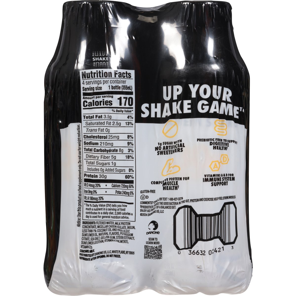Flavored with other natural flavors. 30 g protein per serving. 1 g sugar. 5 g prebiotic fiber. 1 g sugar with no artificial sweeteners. Gluten-free. Vitamins A & D for immune system support. Up your shake game. Prebiotic fiber to support digestive health(a). Complete protein for muscle health(a). (a) Prebiotics feed to food bacteria in the gut. Protein and exercise help fuel strong muscles. Enjoy as part of a balanced diet. Scan to learn more. Comments? Call or text 1-800-427-3274.