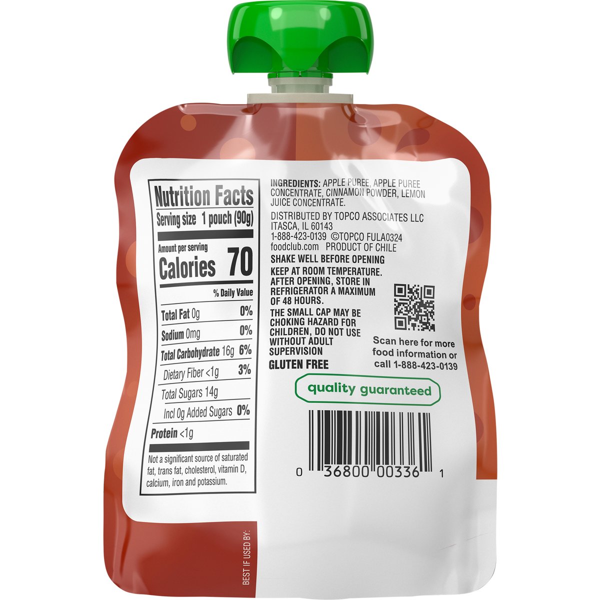 No artificial colors, flavors or preservatives. Gluten free. No high fructose corn syrup. Quality guaranteed. foodclub.com. Scan for more food information or call 1-888-423-0139. 1-888-423-0139. Product of Chile.