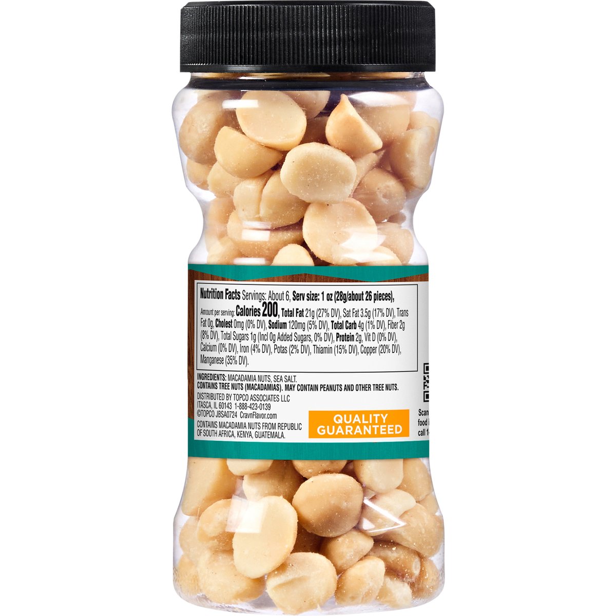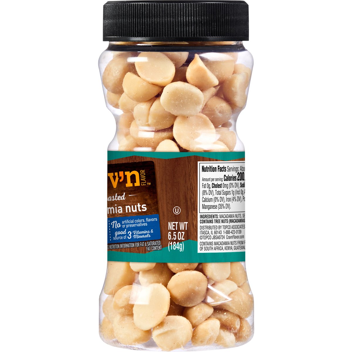 No artificial colors, flavors or preservatives. Good source of 3 vitamins & minerals. See nutrition information for fat & saturated fat content. Quality Guaranteed. CravnFlavor.com. Scan for more food information or call 1-888-423-0139. 1-888-423-0139. Contains macadamia nuts from Republic of South Africa, Kenya, Guatemala.