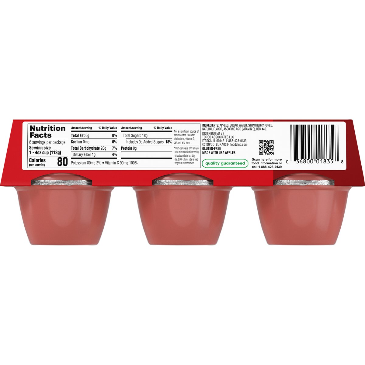 Naturally flavored, artificially colored. Gluten-free. Excellent source of vitamin C per serving. No high fructose corn syrup. Quality guaranteed. foodclub.com. Scan for more food information or call 1-888-423-0139. 1-888-423-0139. Made with USA apples.