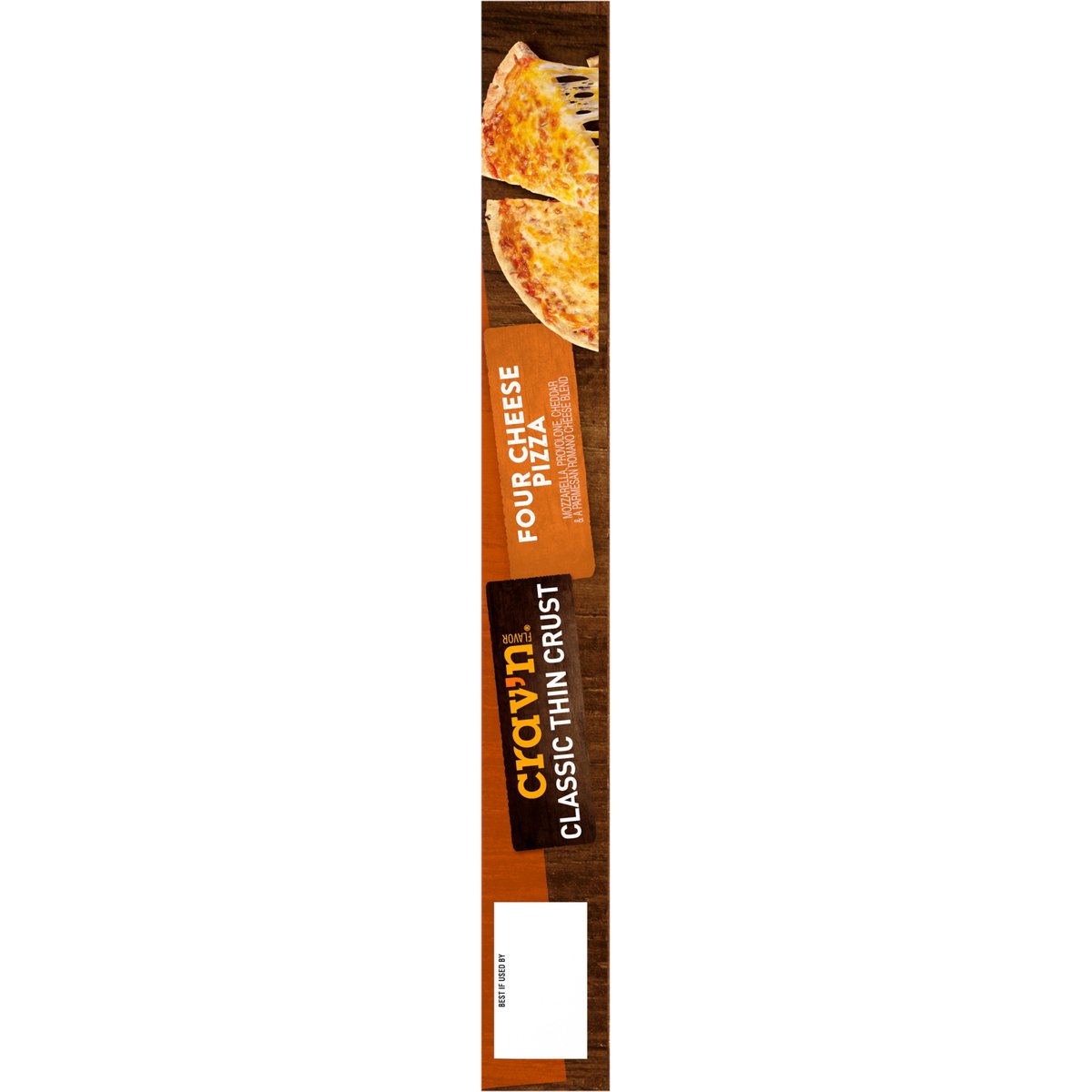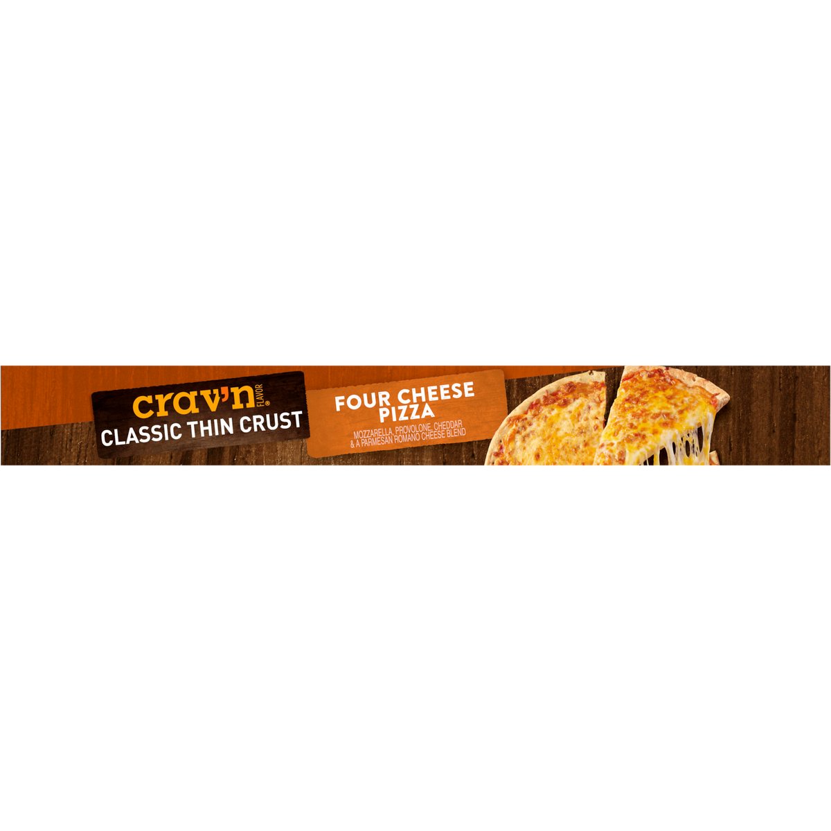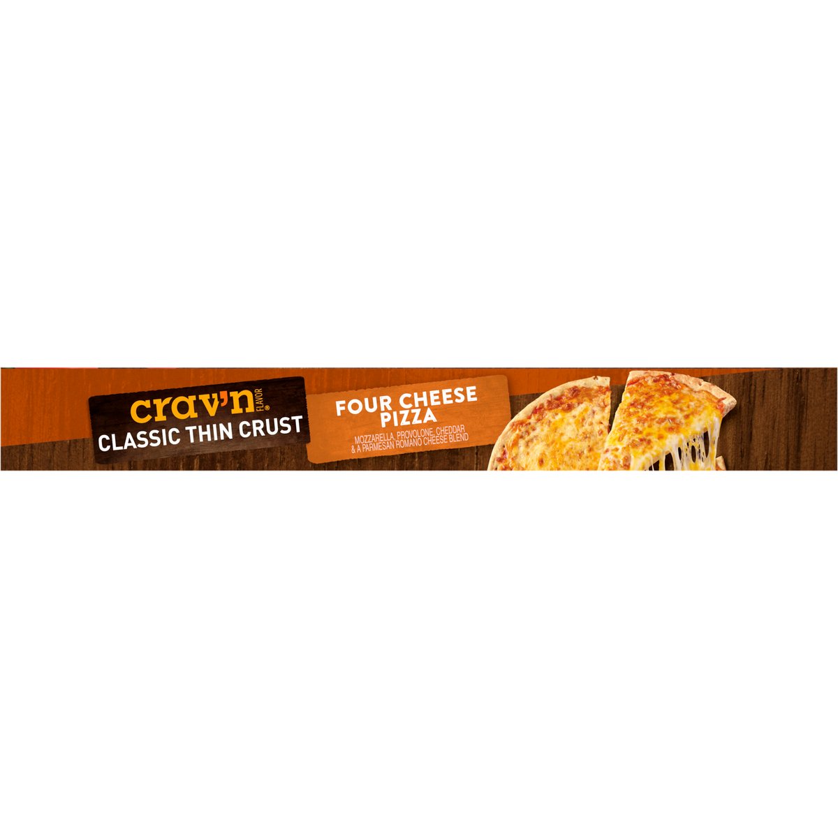 Mozzarella, provolone, cheddar & a Parmesan Romano cheese blend. No artificial flavors. Good source of calcium. It's pizza night! And you're looking for the most savory, mouthwater'n slice you can find. With so much melty cheese on a thin and crispy crust, look no further. It's serious satisfaction. Quality Guaranteed: If for any reason you are not satisfied, we'll give you a full refund. CravnFlavor.com. Scan for more food information or call 1-888-423-0139. 1-888-423-0139. 100% of this carton is recyclable.