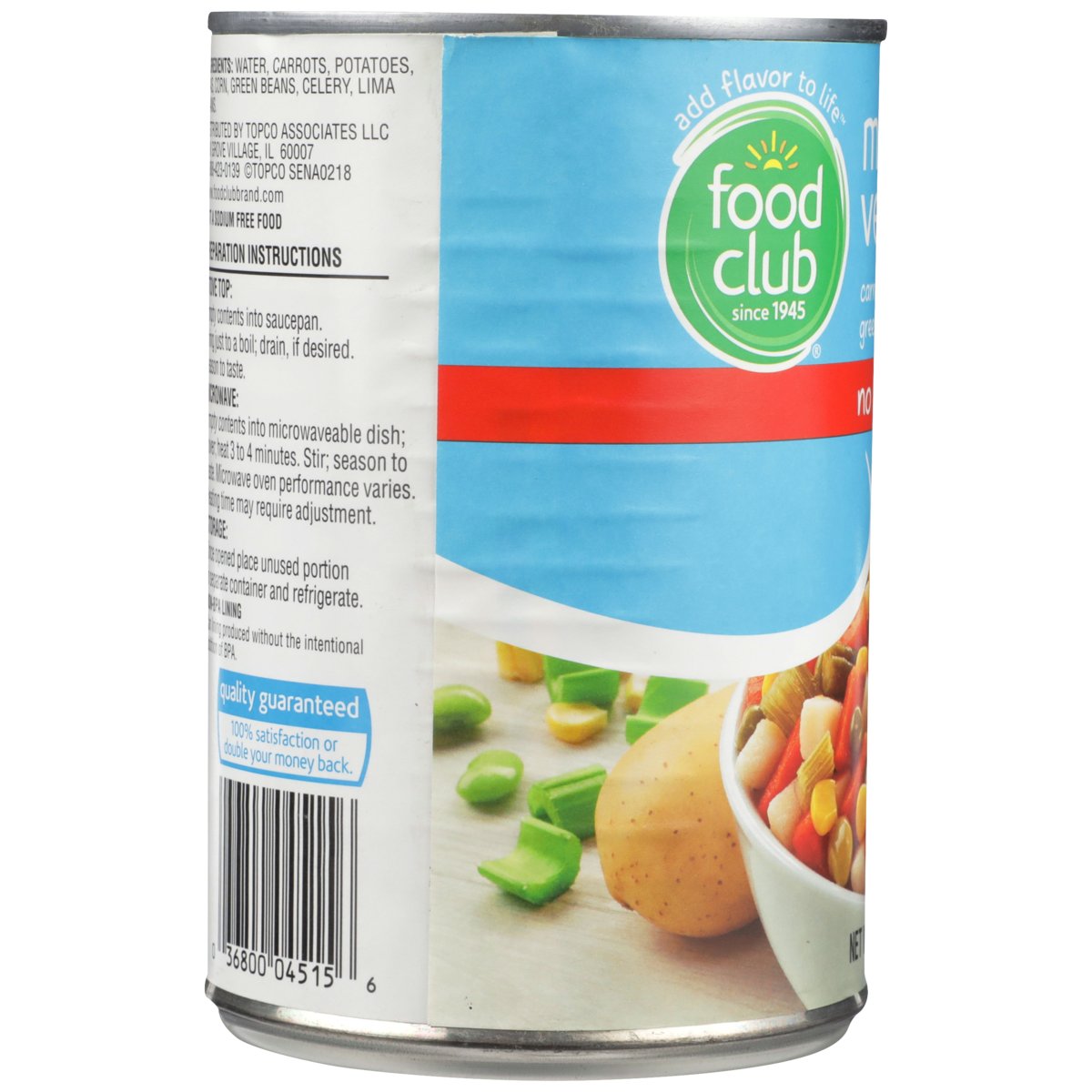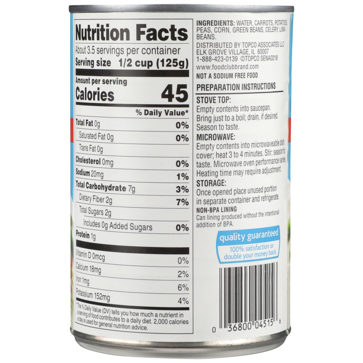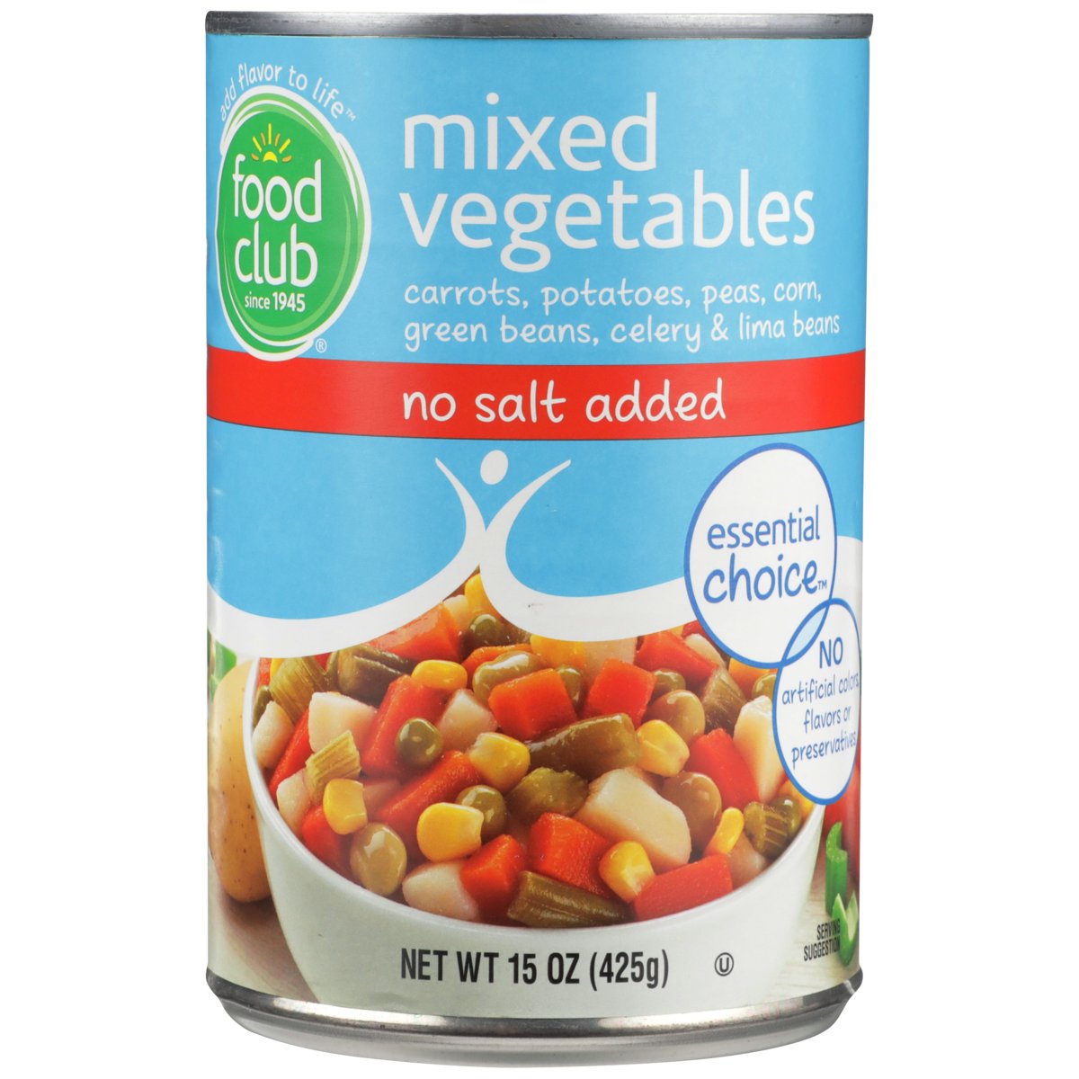 Food Club ESSENTIAL CHOICE No Salt Added Mixed Vegetables Carrots, Potatoes, Peas, Corn, Green Beans, Celery & Lima Beans