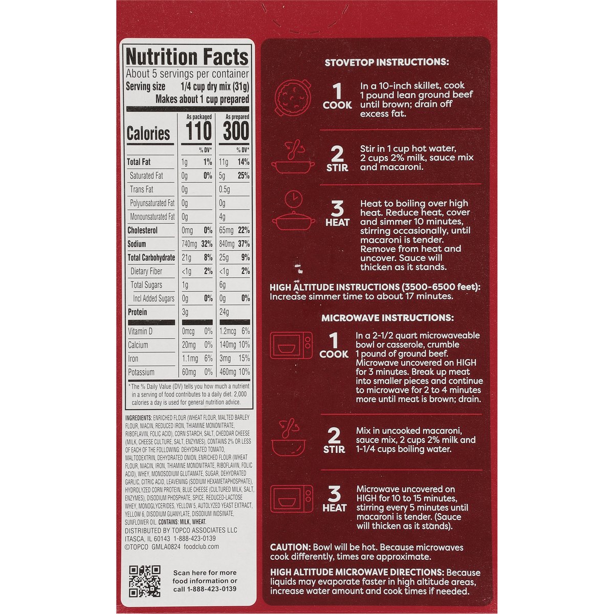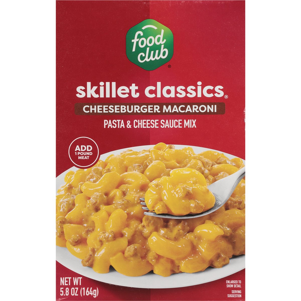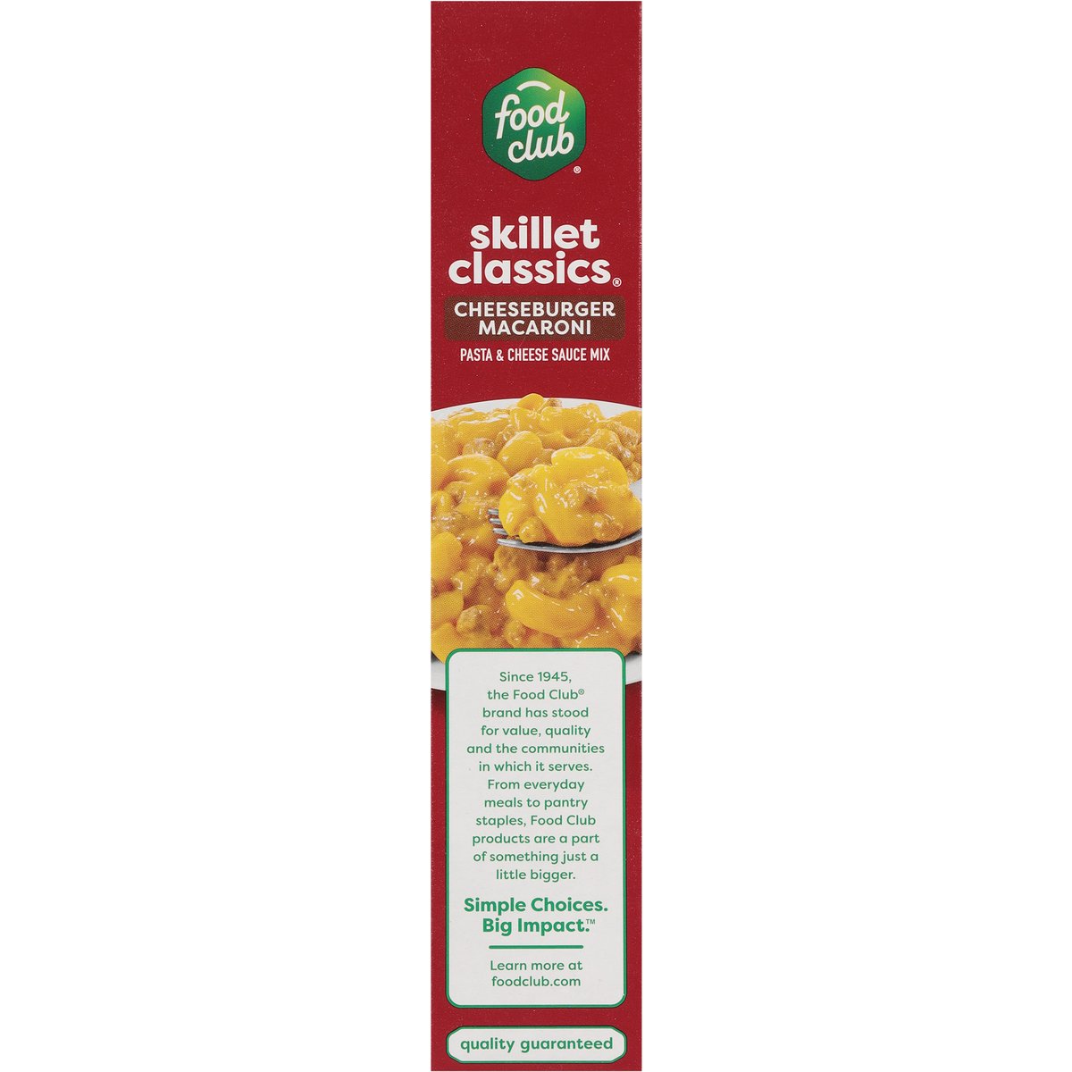 Pasta & cheese sauce mix. Add 1 pound meat. Since 1945, the Food Club brand has stood for value, quality and the communities in which it serves. From everyday meals to pantry staples, Food Club products are a part of something just a little bigger. Simple Choices. Big Impact. Quality guaranteed. foodclub.com. Scan for more food information or call 1-888-423-0139. 1-888-423-0139. Learn more at foodclub.com.