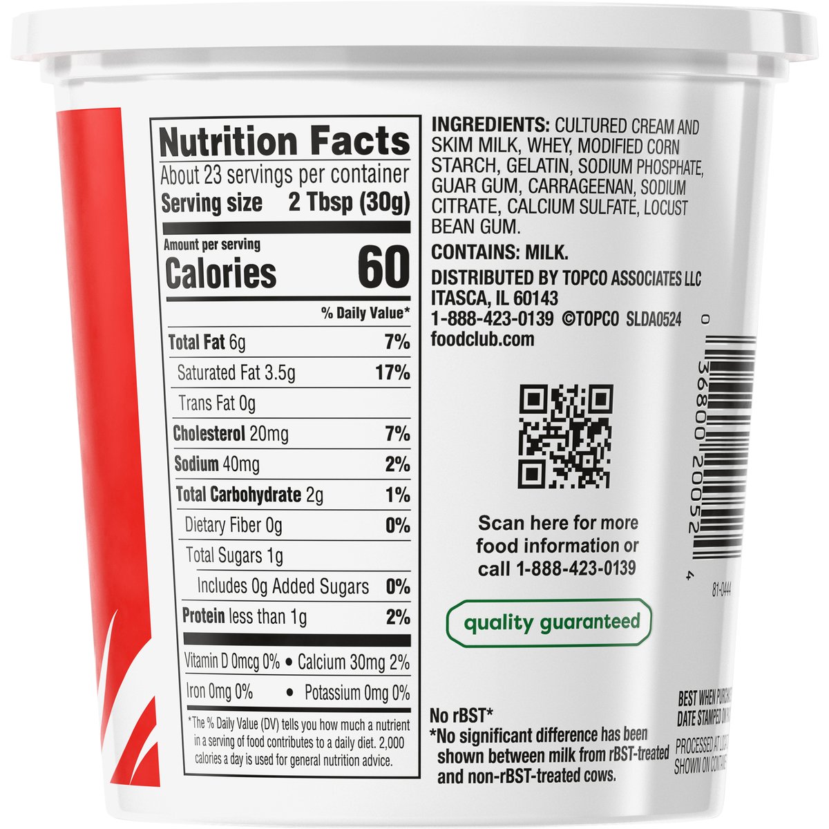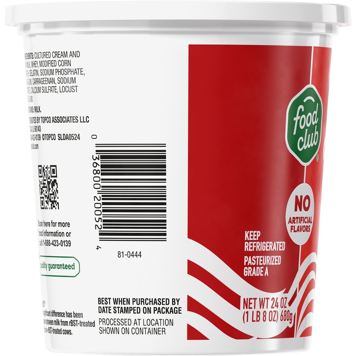 No artificial flavors. Pasteurized. No rBST*. Processed at location shown on container. *No significant difference has been shown between milk from rBST-treated and non-rBST-treated cows. Quality guaranteed. Grade A. foodclub.com. Scan for more food information or call 1-888-423-0139. 1-888-423-0139.