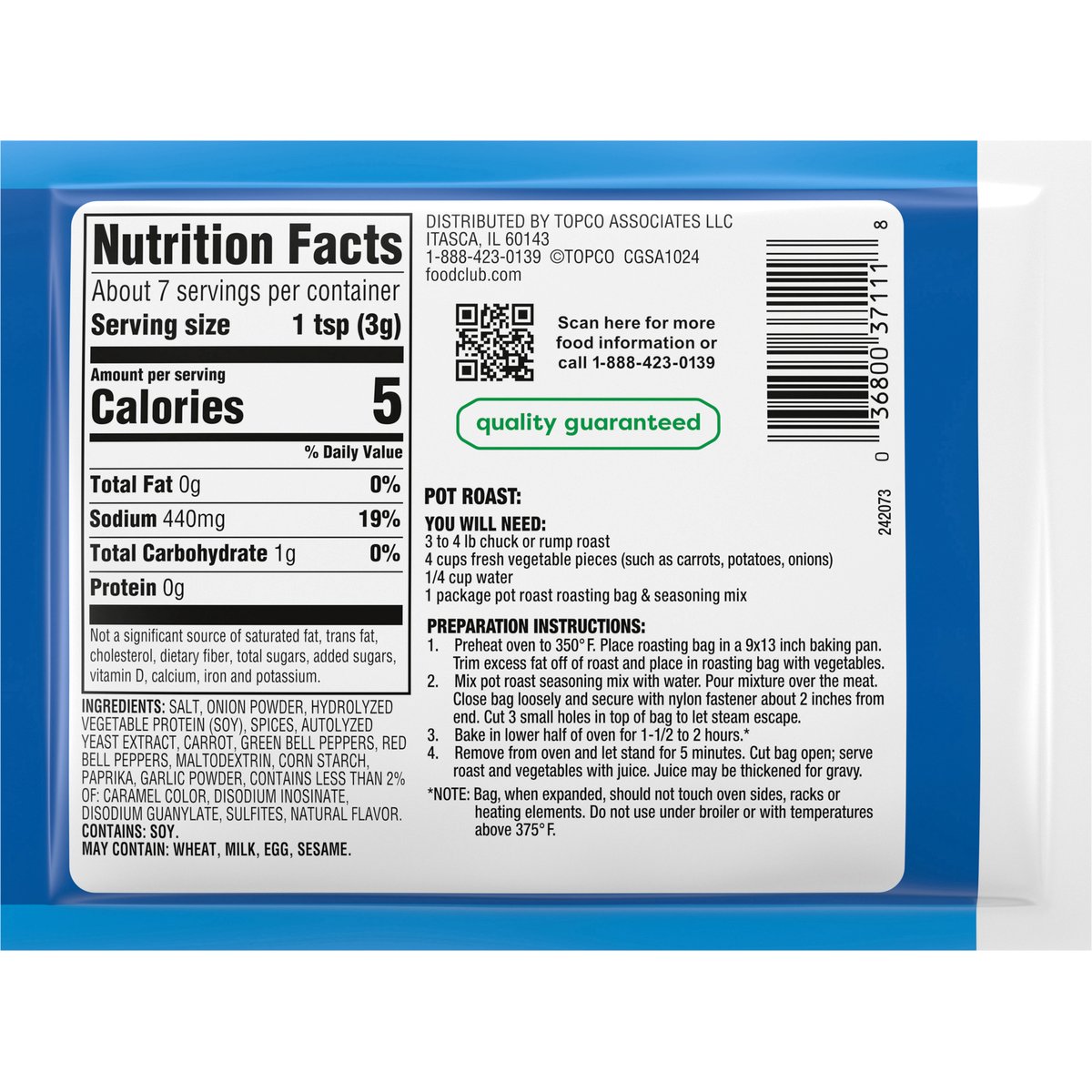 Quality guaranteed. foodclub.com. Scan for more food information or call 1-888-423-0139. 1-888-423-0139.