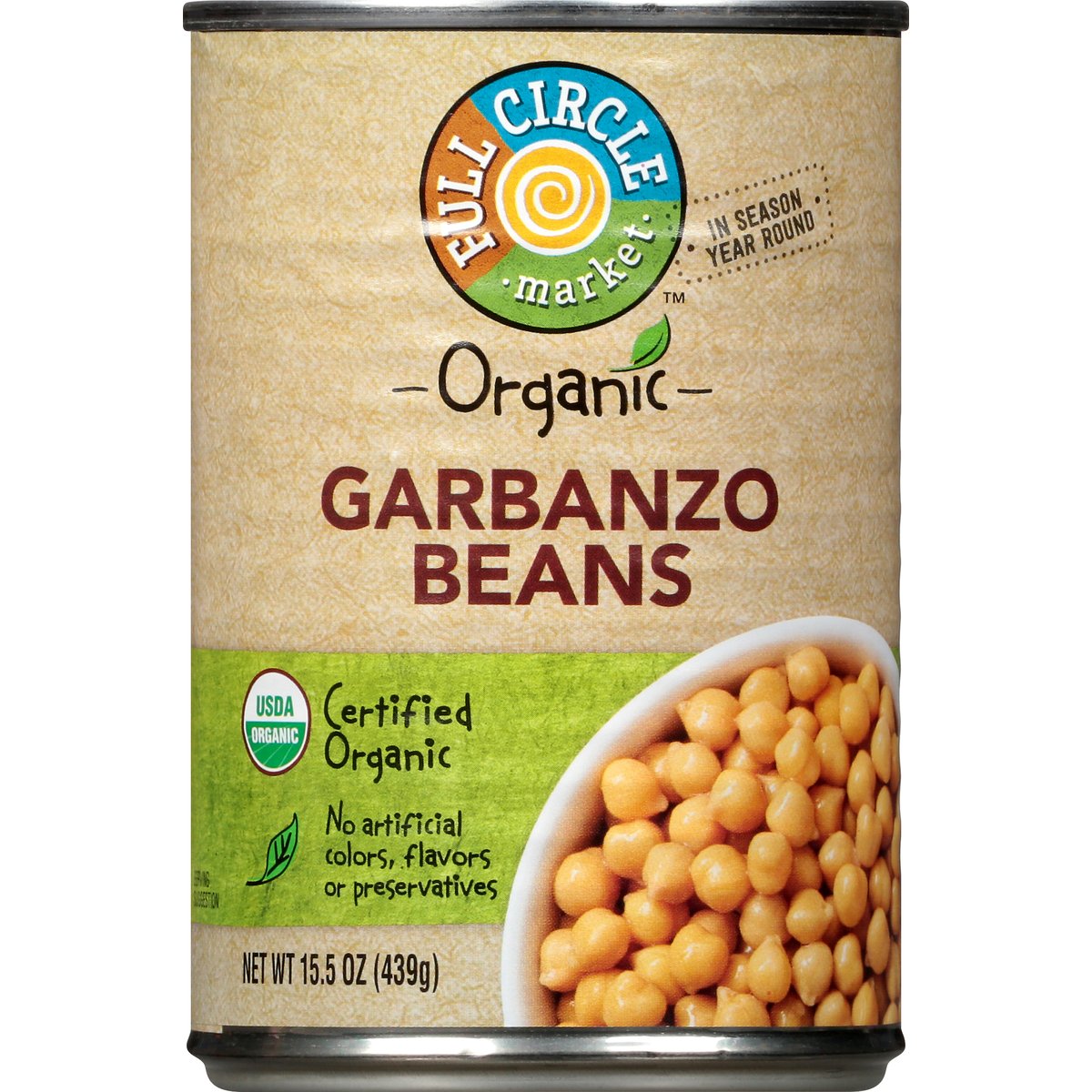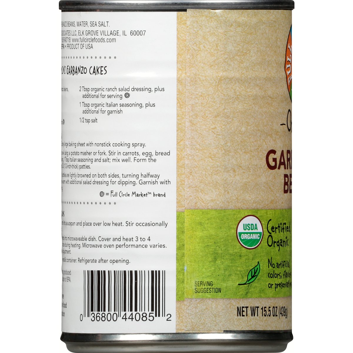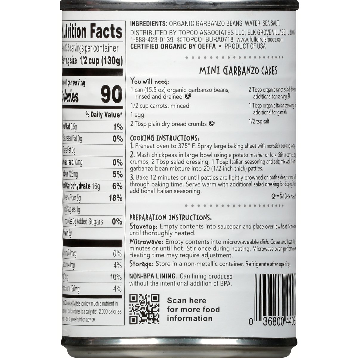 No artificial colors, flavors or preservatives. USDA Organic. Certified Organic. Certified Organic by Oregon Tilth. In season year round. www.fullcirclefoods.com. Scan for more food information. Non-BPA lining. Can lining produced without the intentional addition of BPA. Product of USA.