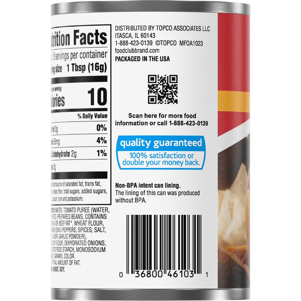 Fat free. Add flavor to life. Since 1945. No certified synthetic colors. Quality Guaranteed: 100% satisfaction or double your money back. foodclubbrand.com. Scan for more food information or call 1-888-423-0139. 1-888-423-0139 Non-BPA intent can lining. The lining of this can was produced without BPA. Packaged in the USA.