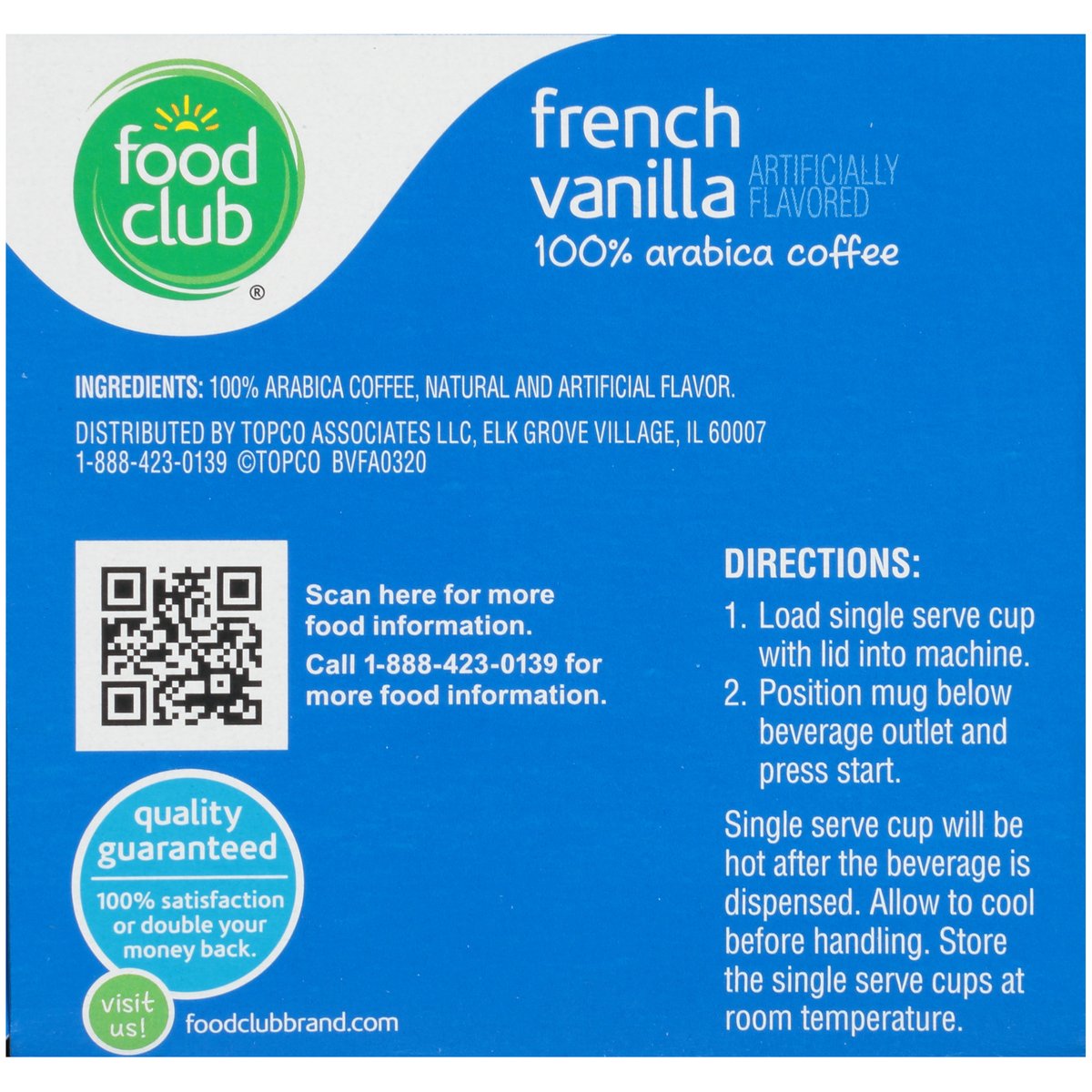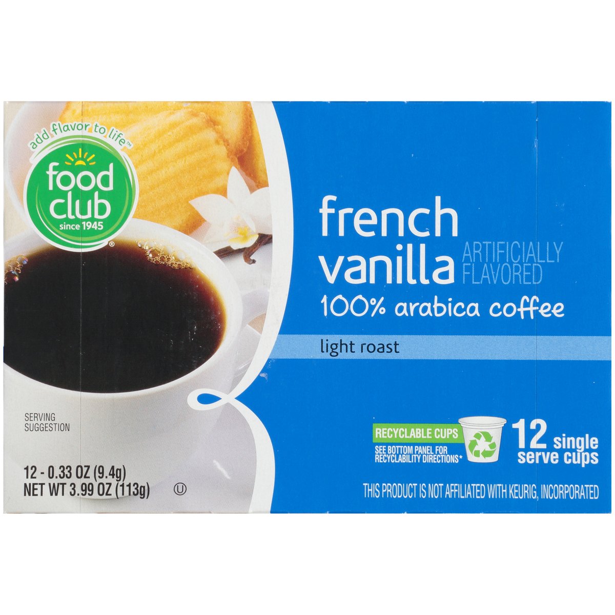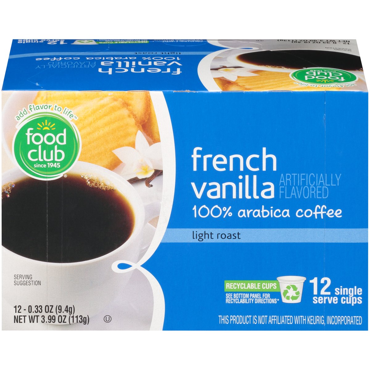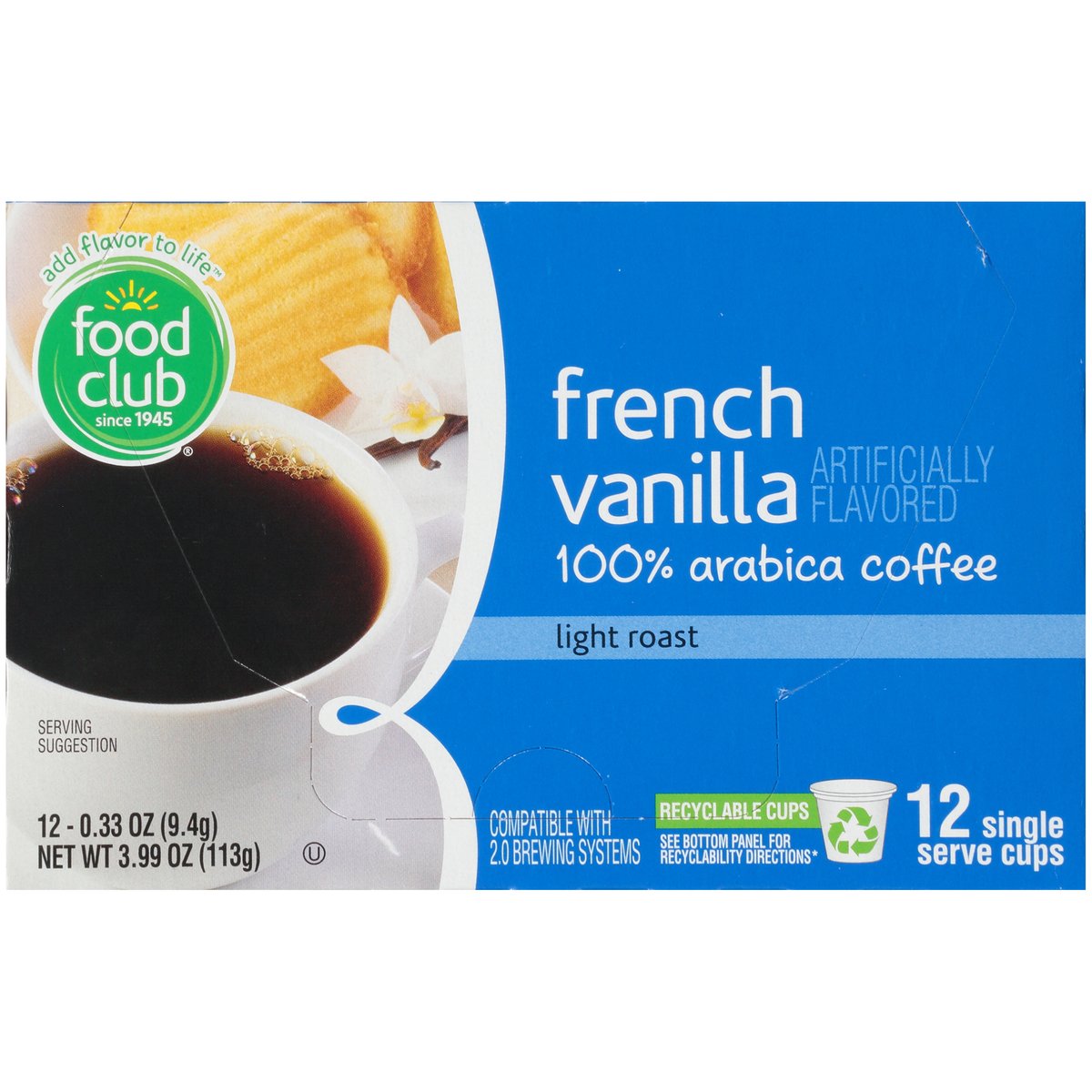 Food Club Light Roast French Vanilla 100% Arabica Coffee Single Serve Cups