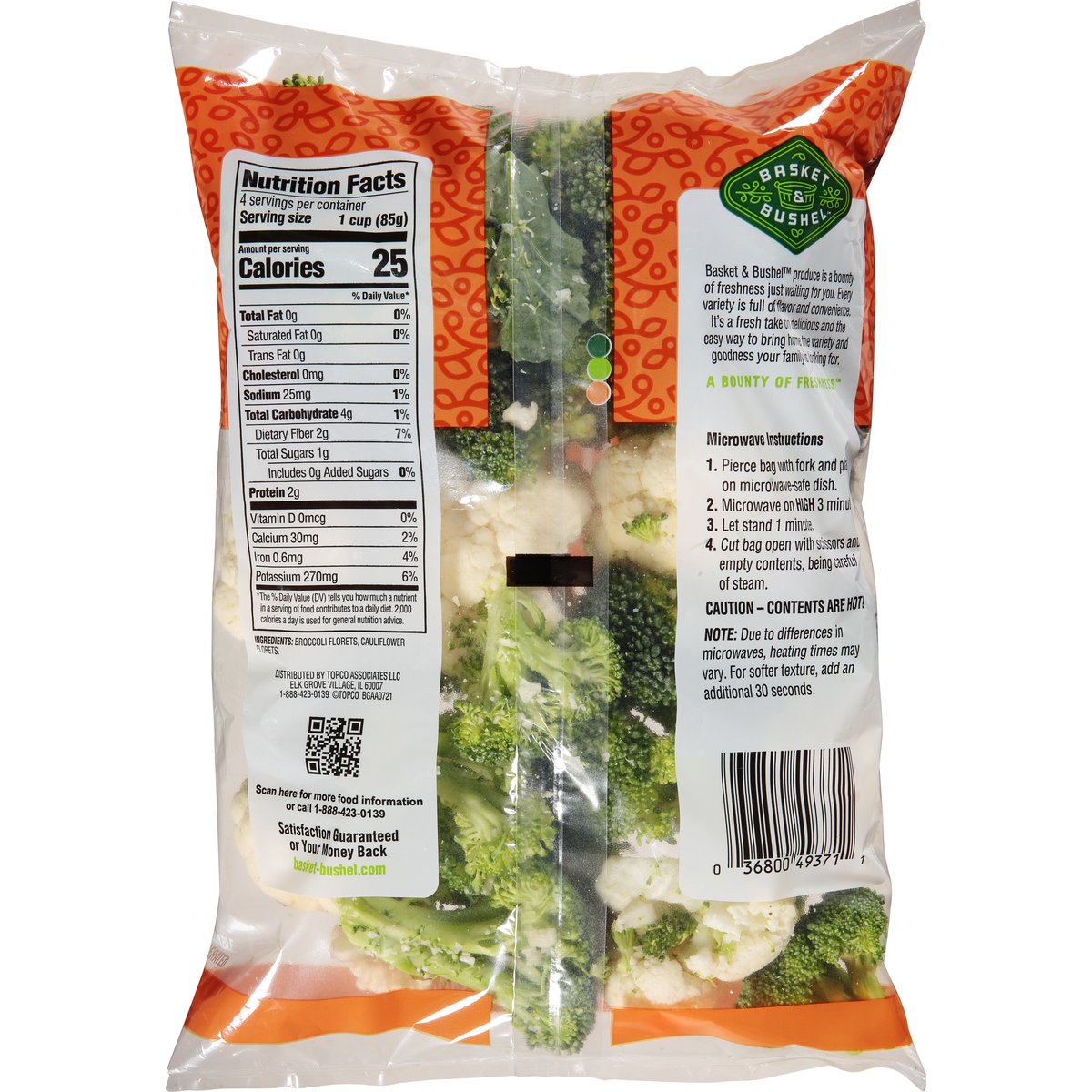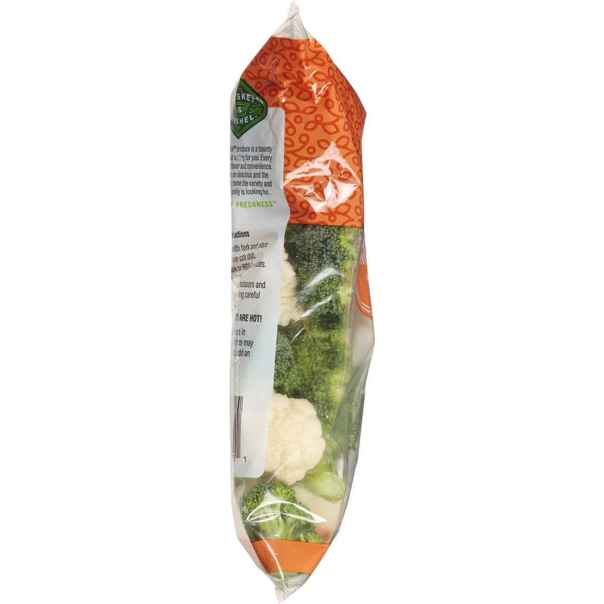 Washed & ready to eat. Microwave in the bag. Basket & Bushel produce is a bounty of freshness just waiting for you. Every variety is full of flavor and convenience. It's a fresh take on delicious and the easy way to bring home the variety and goodness your family is looking for. A bounty of freshness. Quality guarantee. Satisfaction guaranteed or your money back. basket-bushel.com. Scan for more food information or call 1-888-423-0139.
