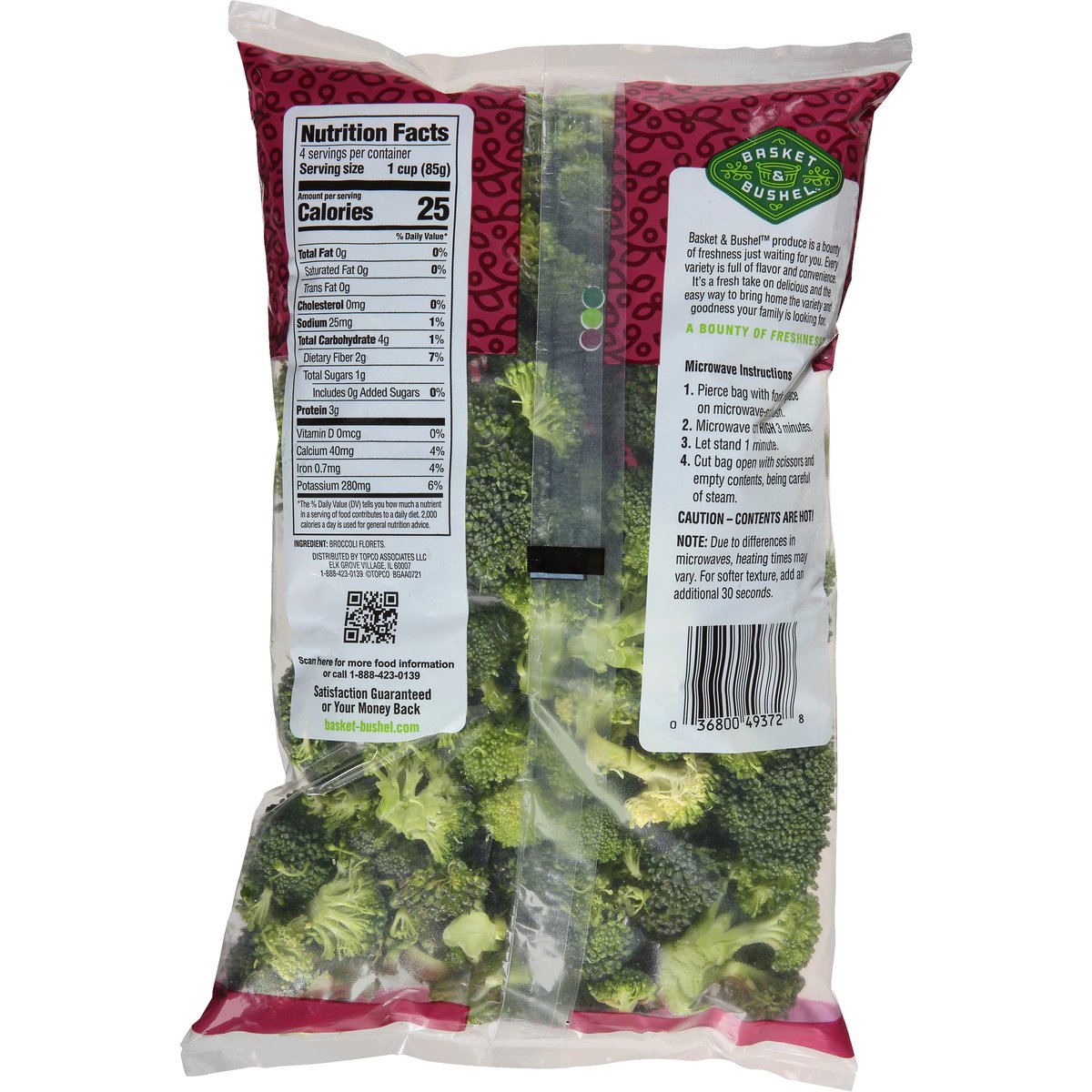 Washed & ready to eat. Microwave in the bag. Basket & Bushel produce is a bounty of freshness just waiting for you. Every variety is full of flavor and convenience. It's a fresh take on delicious and the easy way to bring home the variety and goodness your family is looking for. A bounty of freshness. Quality guarantee. Satisfaction guaranteed or your money back. basket-bushel.com. basket-bushel.com. Scan for more food information or call 1-888-423-0139.