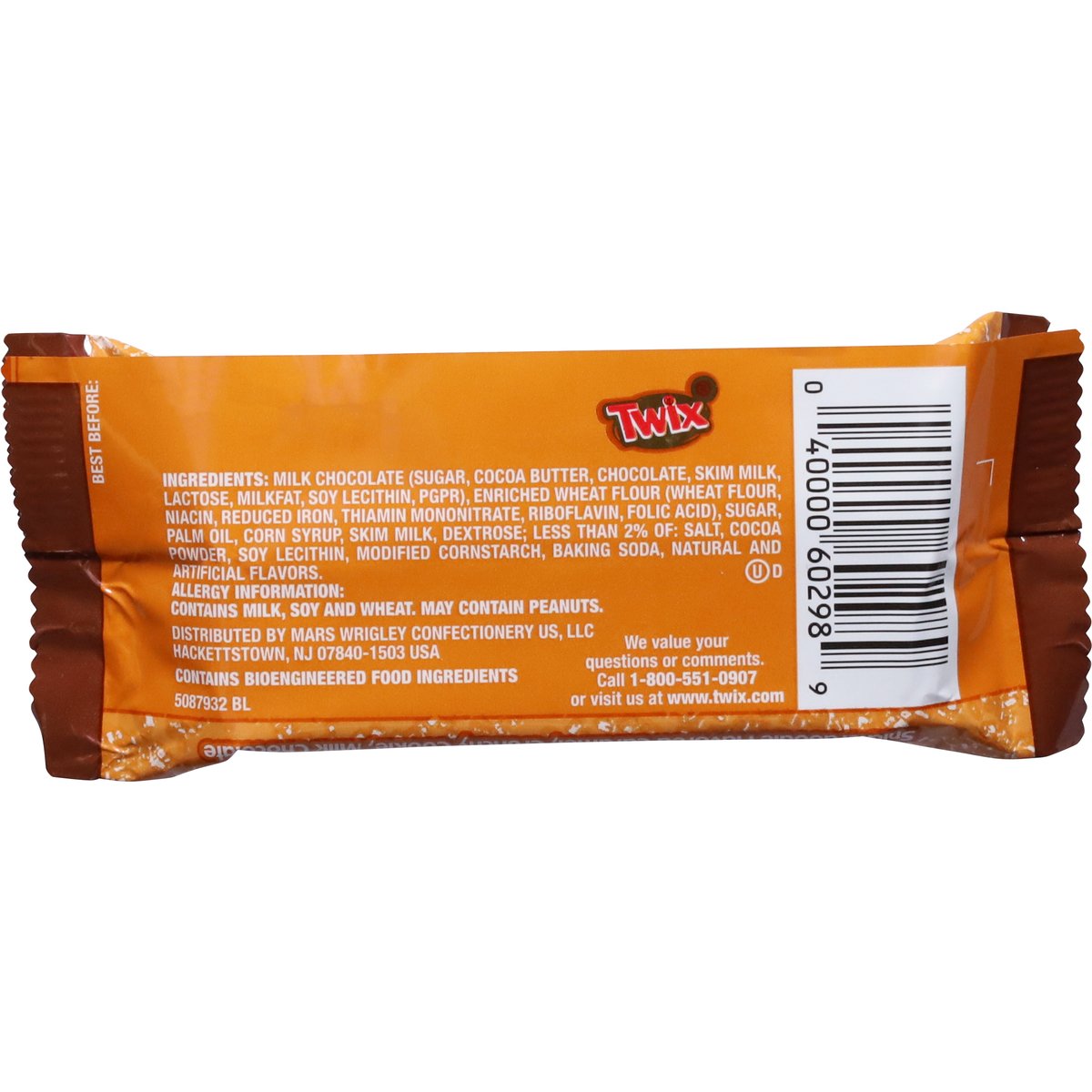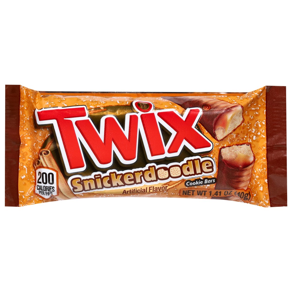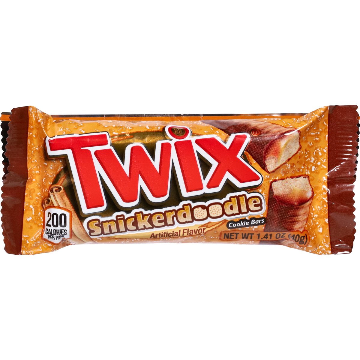Artificial flavor. 200 calories per pack. Contains bioengineered food ingredients. Snickerdoodle. www.twix.com. We value your questions or comments. Call 1-800-551-0907 or visit at www.twix.com.