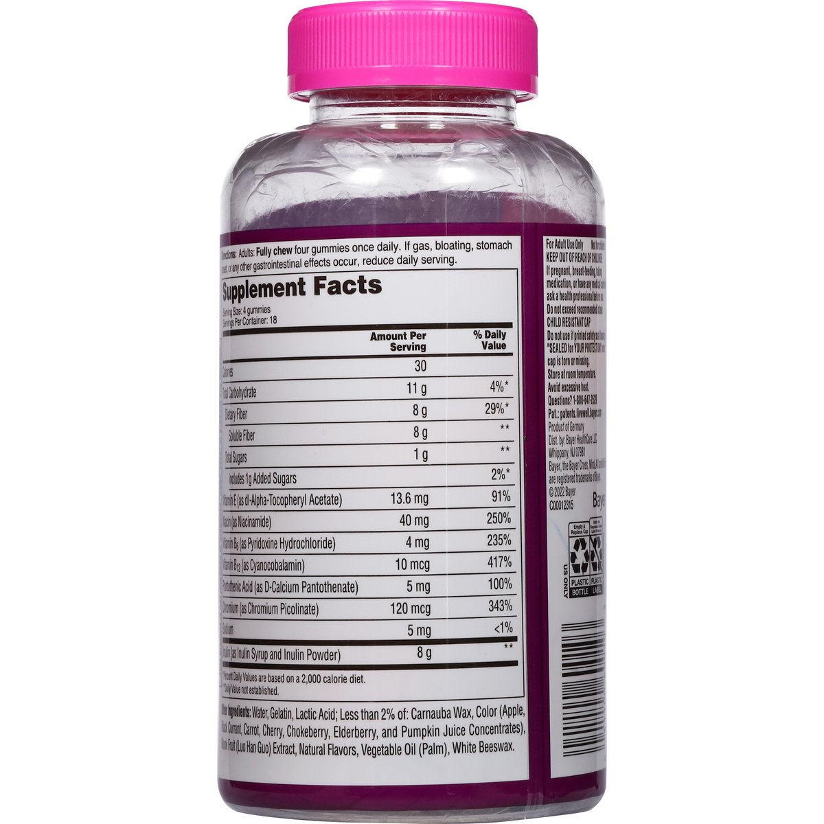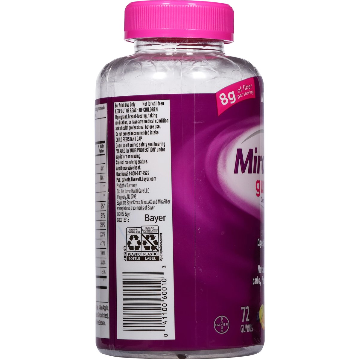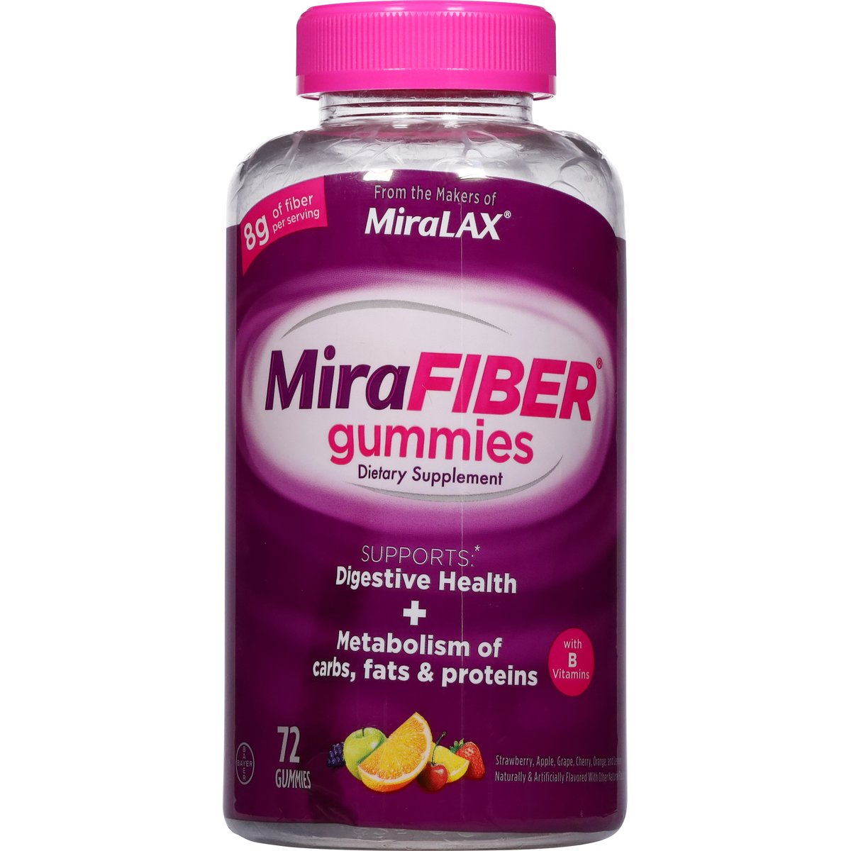 Dietary Supplement. Strawberry, apple, grape, cherry, orange, and lemon. Naturally & artificially flavored with other natural flavors. 8 g of fiber per serving With B vitamins. From the makers of MiraLax. Supports: Digestive health + metabolism of carbs, fats & proteins. how2recycle.info. Questions? 1-800-647-2529. Child resistant cap. (This statement has not been evaluated by the Food and Drug Administration. This product is not intended to diagnose, treat, cure, or prevent any disease.) Product of Germany.