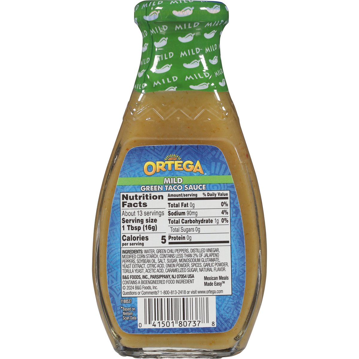 Contains bioengineered food ingredient. Mild. America's #1 Taco Sauce*. New. Mexican meals made easy. * Based on Nielsen Scan Data. www.ortega.com. Questions or comments? 1-800-813-2418 or visit www.ortega.com.