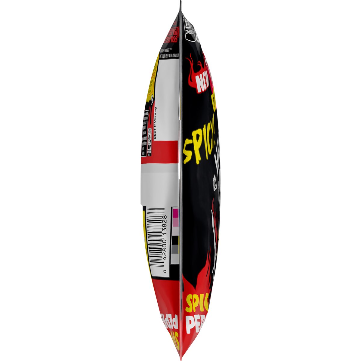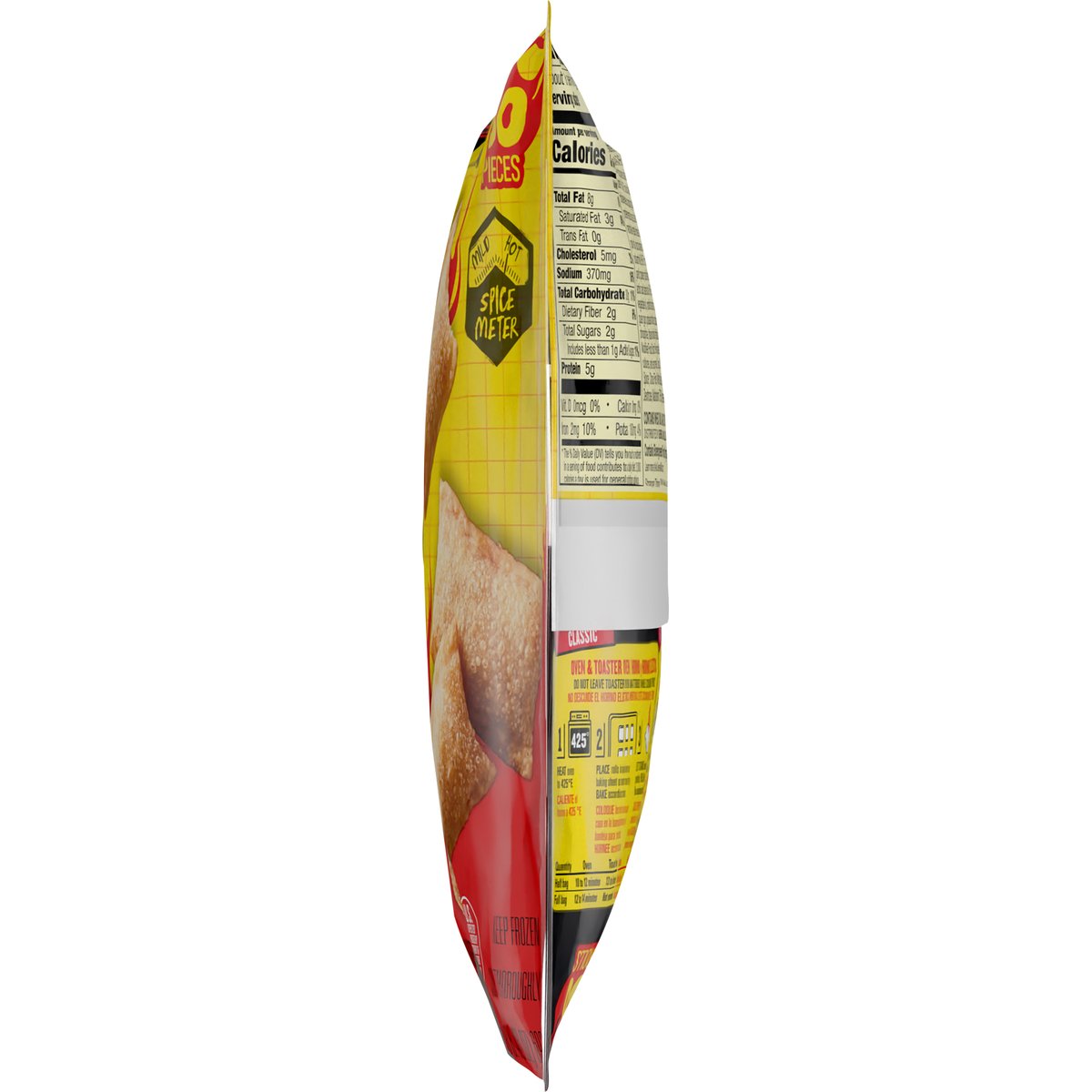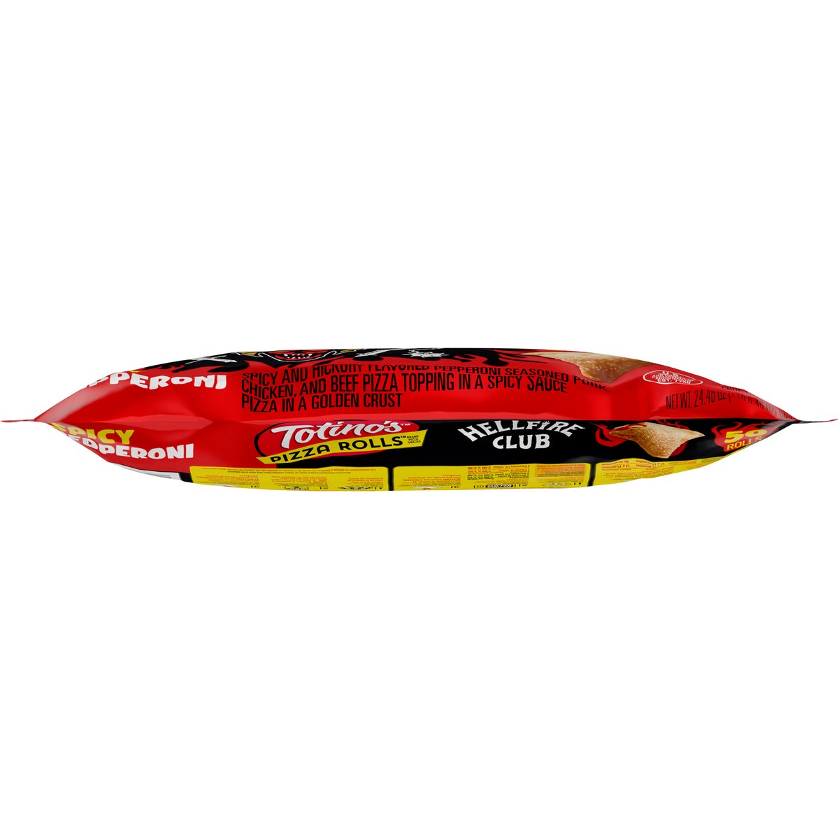 Spicy and hickory flavored pepperoni seasoned pork, chicken, and beef pizza topping in a spicy sauce pizza in a golden crust. Per 6 Rolls: 210 calories; 3 g sat fat (14% DV); 370 mg sodium (16% DV); <1 g added sugars (1% DV). Contains bioengineered food ingredients. Learn more at Ask.GeneralMills.com. Netflix: Stranger Things. New. Spicy Meter: Hot. Spicy! U.S. inspected and passed by Department of Agriculture. www.totinos.com. how2recycle.info. Ask.GeneralMills.com. Questions or comments? Save the package and visit us on our website or call 1-800-231-0308. www.totinos.com. Box Tops for Education: Download the app. Scan your receipt. Earn cash for schools.