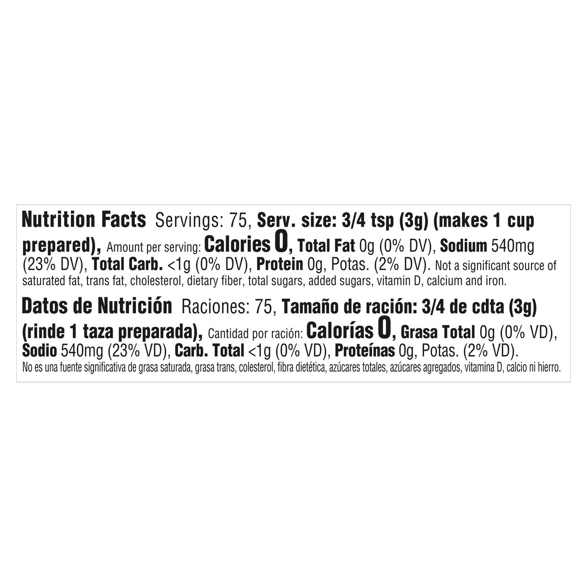 0 calories per 3/4 tsp. Contains a bioengineered food ingredient. Question? Visit learnaboutmyfood.com. Since 1838. Our Promise: Made with real vegetables and spices. how2recycle.info. learnaboutmyfood.com. Please call toll free 1-866-KNORR-01. Product of Mexico.