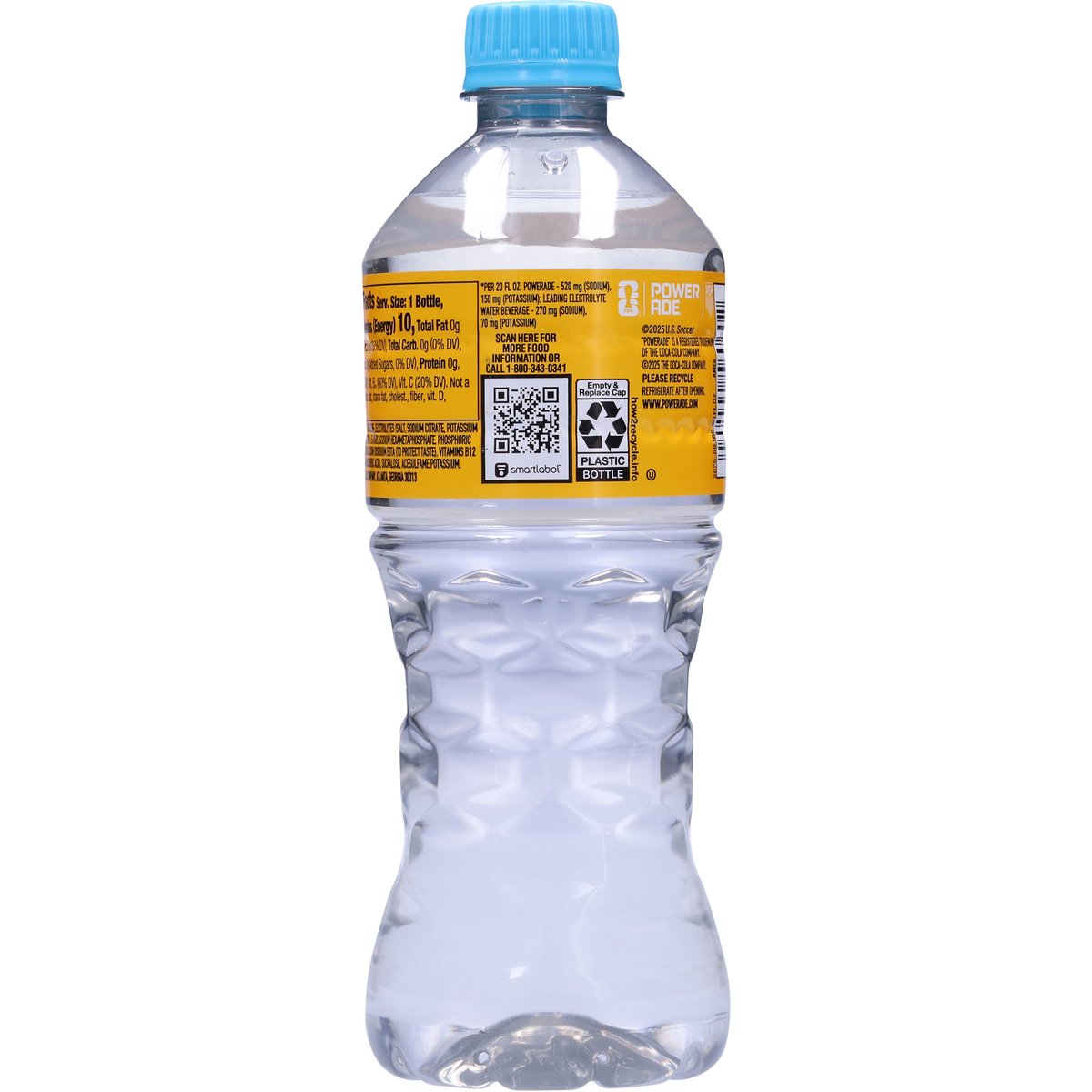 Flavored with other natural flavors. 10 calories per bottle. Zero sugar. www.powerade.com. how2recycle.info. SmartLabel: Scan for more food information or call 1-800-343-0341. Please recycle.