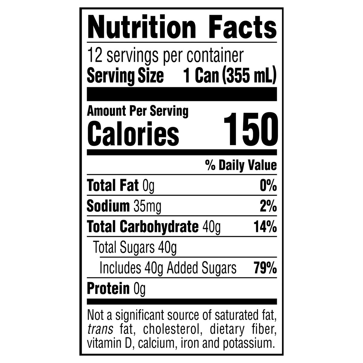 Artificially flavored. Per 1 Can Serving: 150 calories; 0 g sat fat (0% DV); 35 mg sodium (2% DV); 40 g total sugars. Caffeine Content: 54 mg/12 fl oz. New look. A product of the Coca-Cola company. www.mrpibb.com. how2recycle.info. SmartLabel: Scan for more food information or call 1-800-438-2653. Recycle me see you again soon! Canned Under Authority of The Coca-Cola Company, Atlanta, GA 30313 by a Member of the Coca-Cola Bottlers Association, Atlanta, GA 30327.