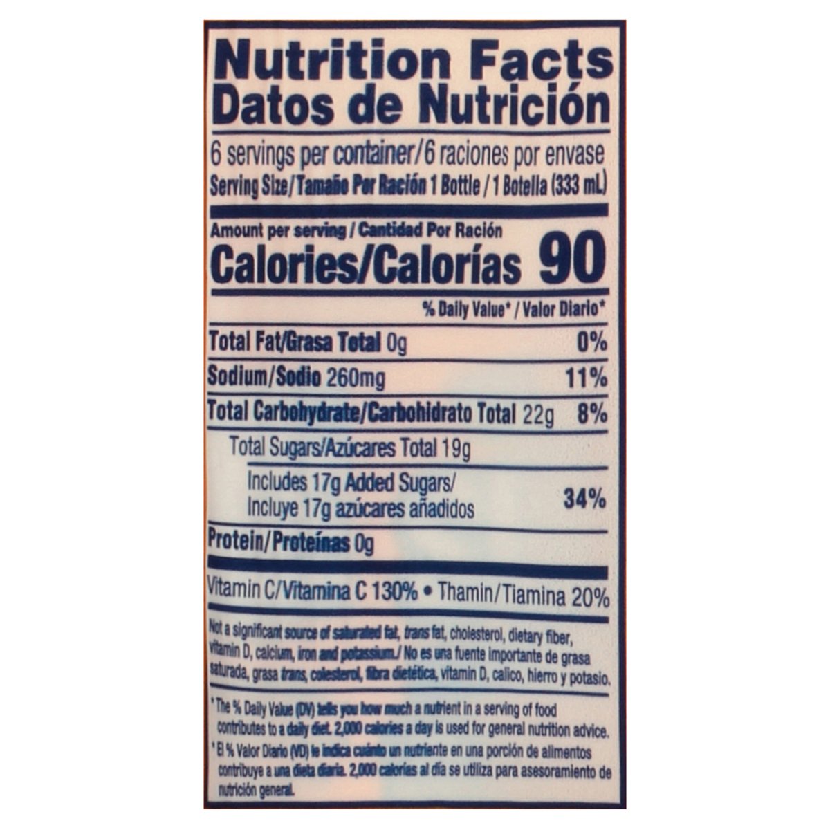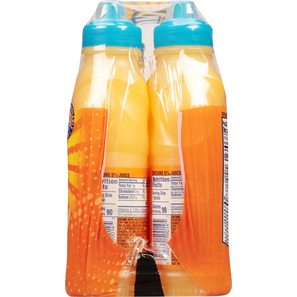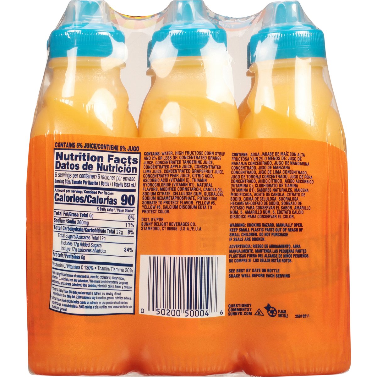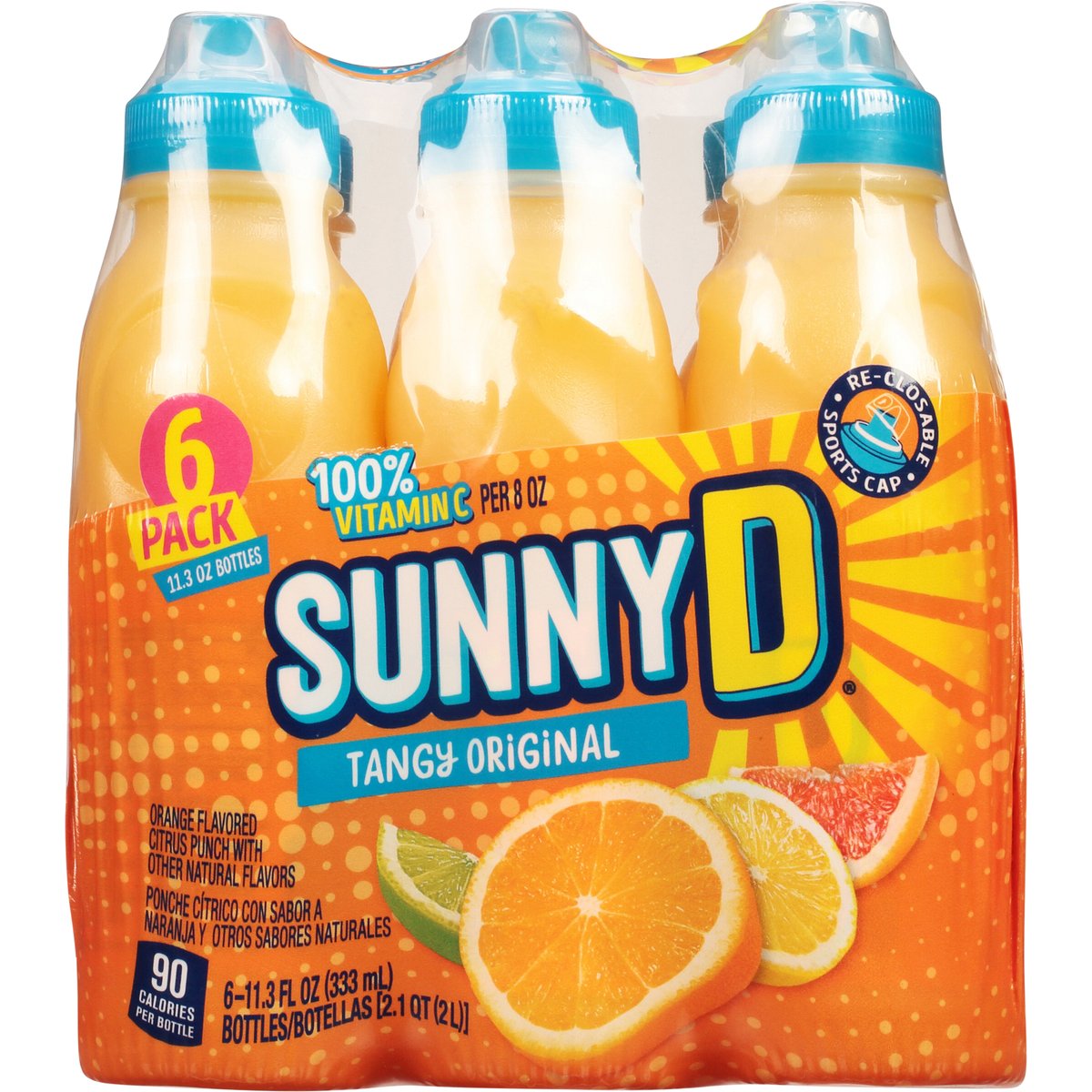 Orange flavored citrus punch with other natural flavors. 100% vitamin C per 8 oz. 90 calories per bottle. sunnyd.com. Questions? Comments? sunnyd.com. Re-closable sports cap. Please recycle.