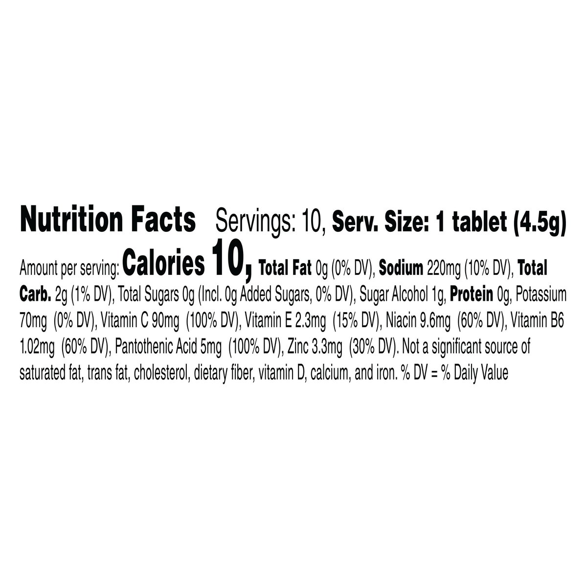 Naturally flavored with other natural flavors. 10 calories per tablet. Vitamin C & Zinc immune support*. Low calorie. *Vitamin C & Zinc to help support a healthy immune system. From the makers of G. Comments? 1-877-377-635.