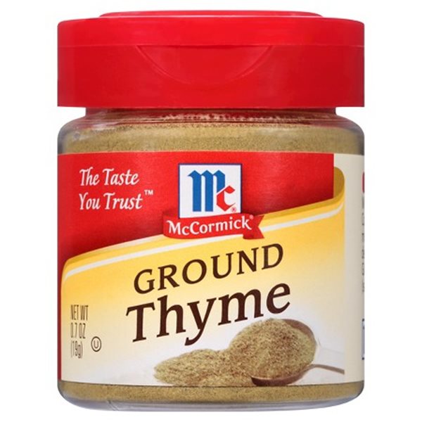 Non GMO. The taste you trust. Long lasting fresh flavor. FlavorSealed to capture vibrant flavor, color & aroma, our Ground Thyme adds savory herb flavor to meatloaf, stews and chicken. mccormick.com/impact. mccormick.com/info. Flavor Maker get App. SmartLabel. See how McCormick is making a difference at mccormick.com/impact. For questions, recipes & more, visit mccormick.com/info or call 1-800-632-5847. Packed in U.S.A.
