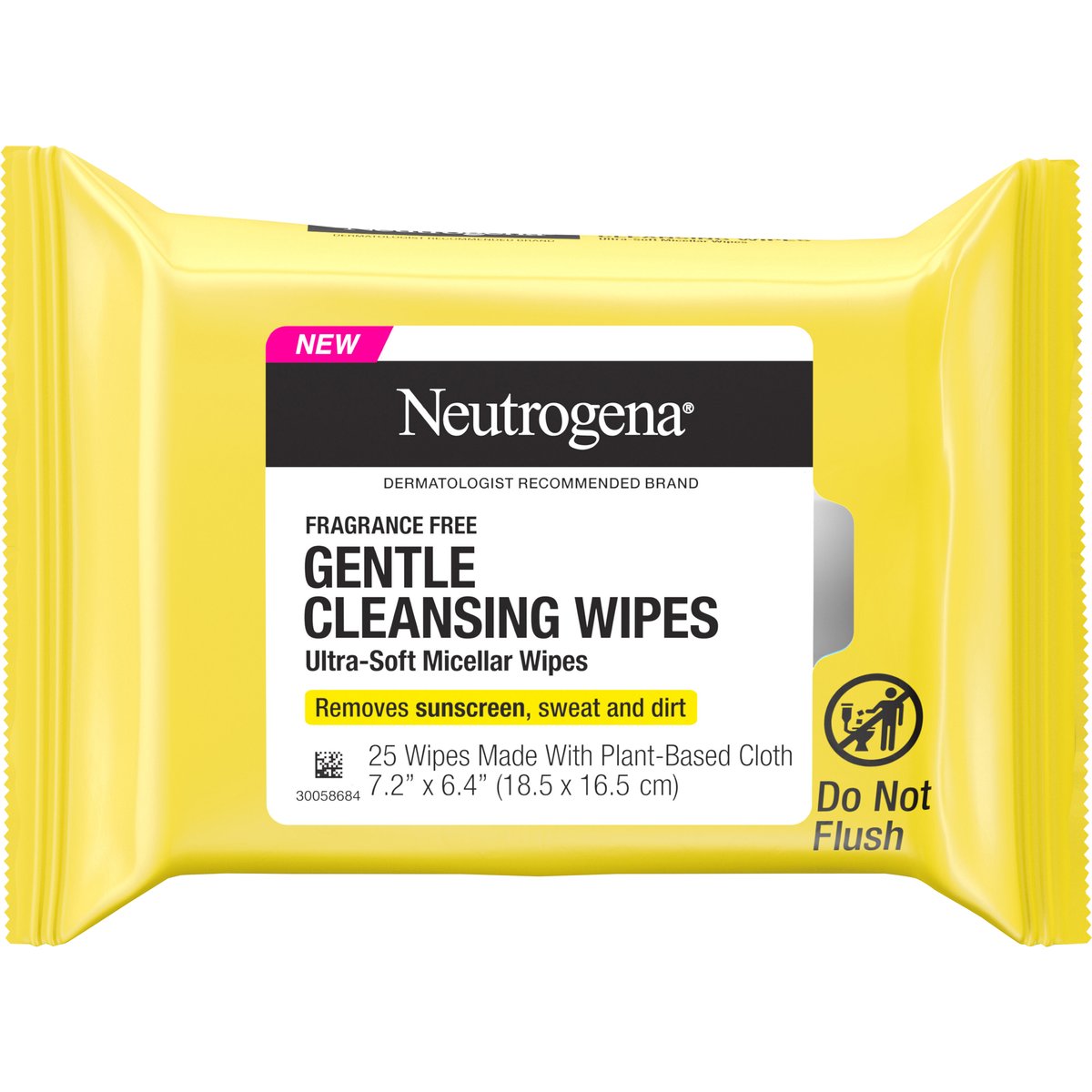 Removes sunscreen, sweat and dirt. 25 Wipes made with plant-based cloth 7.2 Inches x 6.4 Inches (18.5 x 16.5 cm). New. Dermatologist recommended brand. Fragrance free. Removes sunscreen, sweat and dirt. Gentle, ultra-soft micellar infused cloths with Triple Emollient Blend. Effectively removes sunscreen, dirt, oil, sweat and makeup in one-step with no heavy residue. Use for all of your on-the-go cleansing. Clinically tested formula with superior, patented cleansing technology: Subjects agreed this product leaves skin feeling clean and refreshed. Tested by Professionals: Hypoallergenic & sensitive skin approved face wipes are Ophthalmologist & Dermatologist tested. So gentle, it can be used around the delicate eye area. Formulated without: Fragrance, parabens, alcohol, sulfates, phthalates, soap & dyes. www.neutrogena.com. Questions? 800-582-4048; Outside US, dial collect 215-273-8755. www.neutrogena.com.