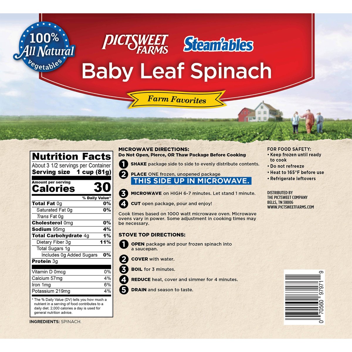 Pictsweet Farms Steam'ables Farm Favorites Baby Leaf Spinach