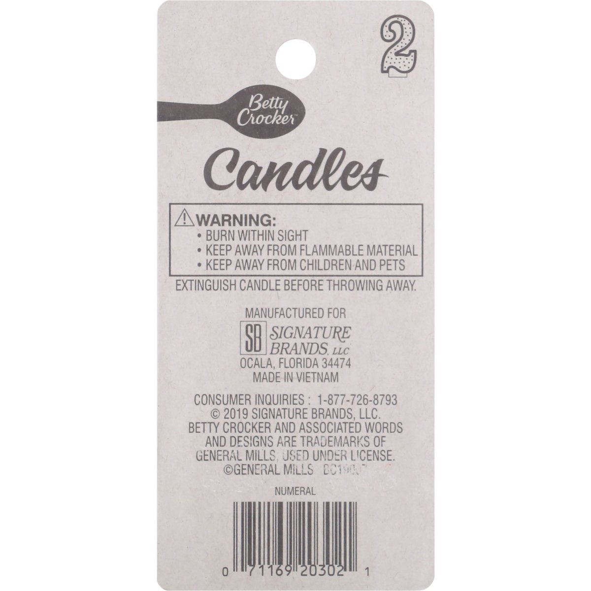 Betty Crocker Birthday Candle, Numeral 2, 3 Inch