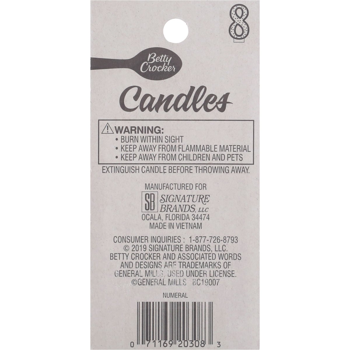 Betty Crocker Birthday Candle, Numeral 8, 3 Inch