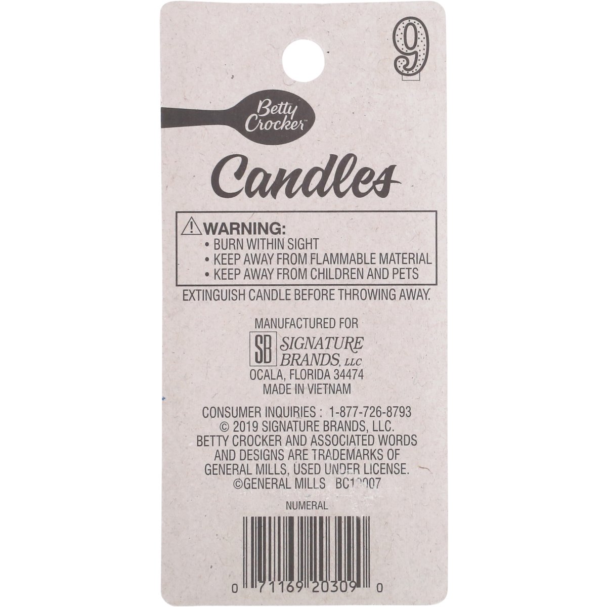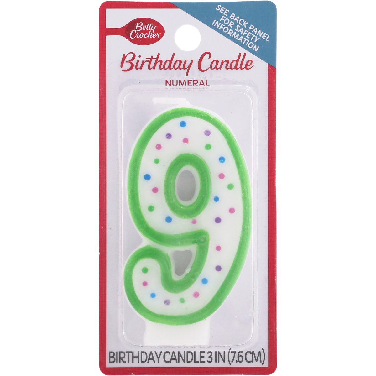 Betty Crocker Birthday Candle, Numeral 9, 3 Inch