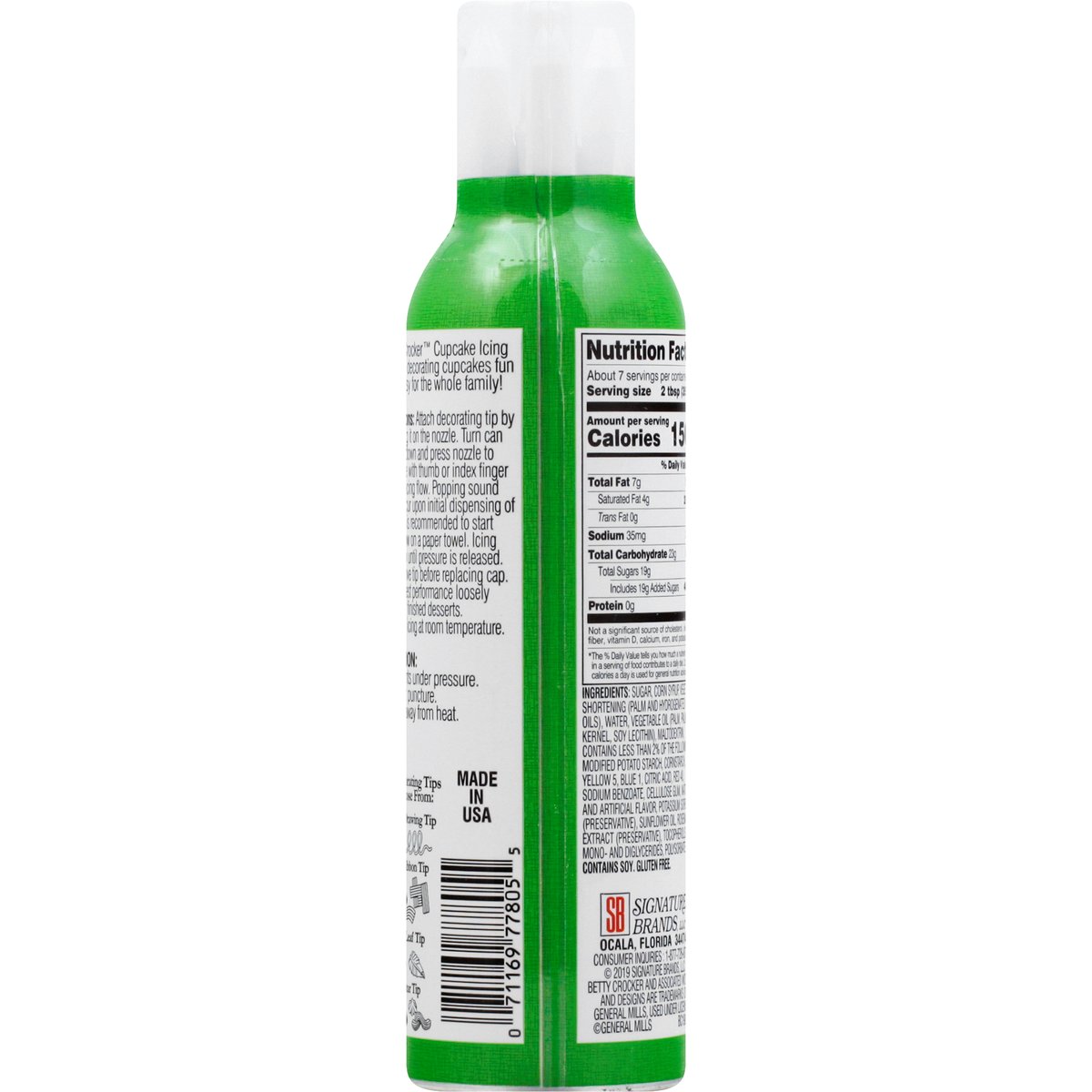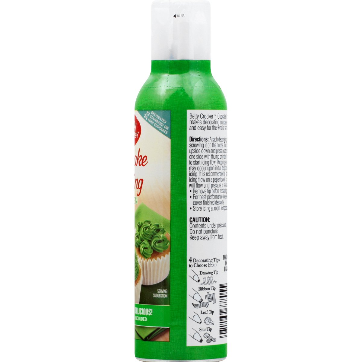 Decorates 12 standard or 24 mini cupcakes. Tastes delicious! 4 tips included. 4 Decorating Tips to Choose From: drawing tip; ribbon tip; leaf tip; star tip. Betty Crocker Cupcake Icing makes decorating cupcakes fun and easy for the whole family! Consumer Inquiries: 1-877-726-8793. Made in USA.